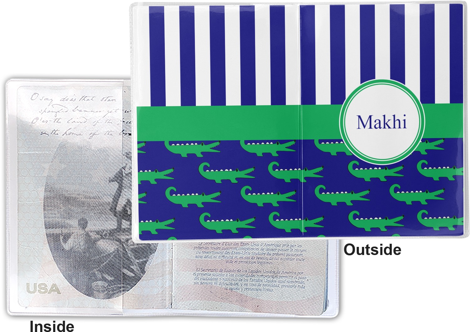 This cover is made of a sturdy clear vinyl with a personalized vinyl insert inside. There is a large and a small pocket on either side to hold the covers of your passport easily and firmly. The passport holder is approximately 7.5" x 5.25", the perfect size to snugly fit your passport. This slim cover is the perfect way to protect your passport without being one more bulky item you have to carry.