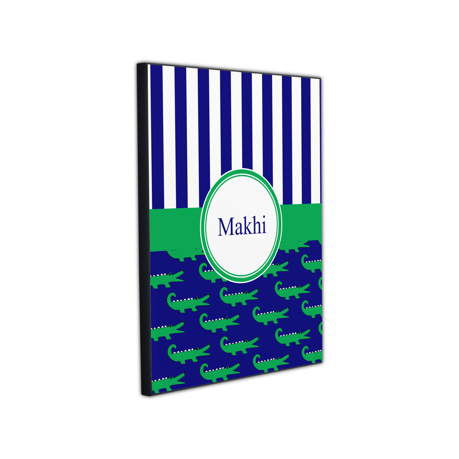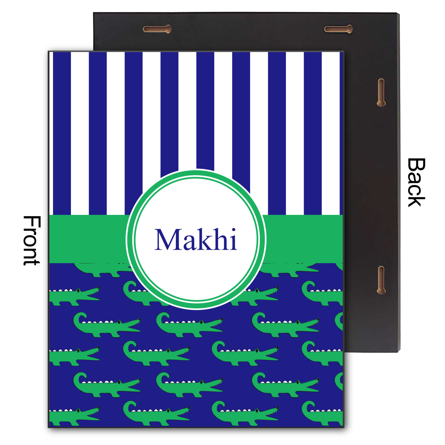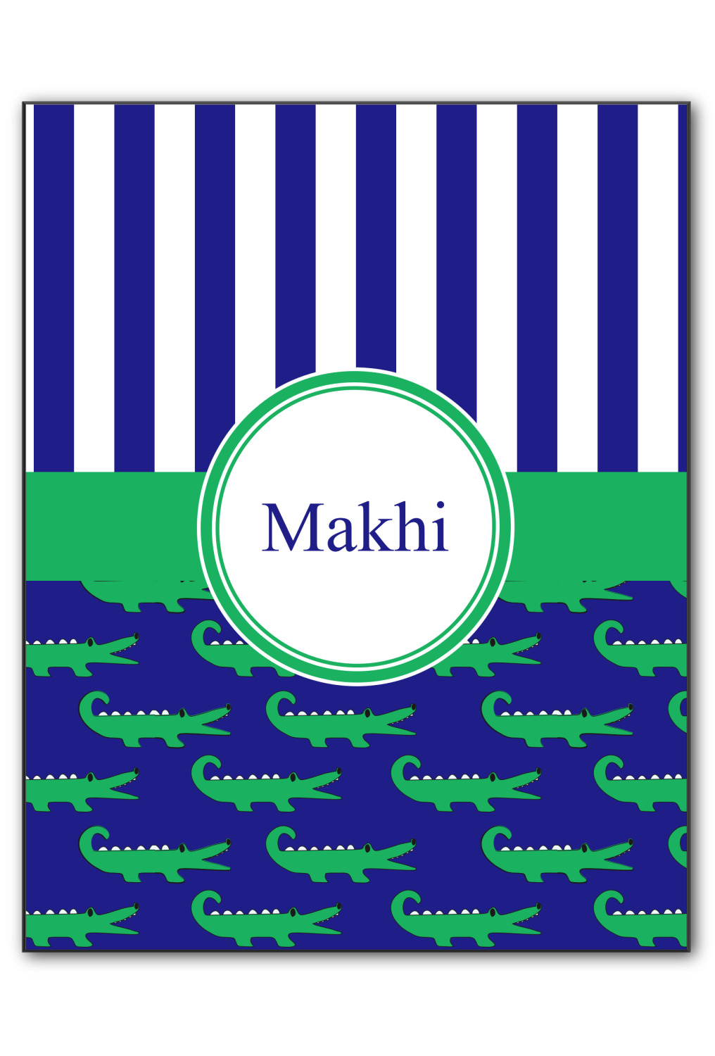 These are the sweetest alligators around! Our adorable green alligators pop and come alive on a blue background. To coordinate the alligator design a bold blue and white striped pattern is added to the top.
