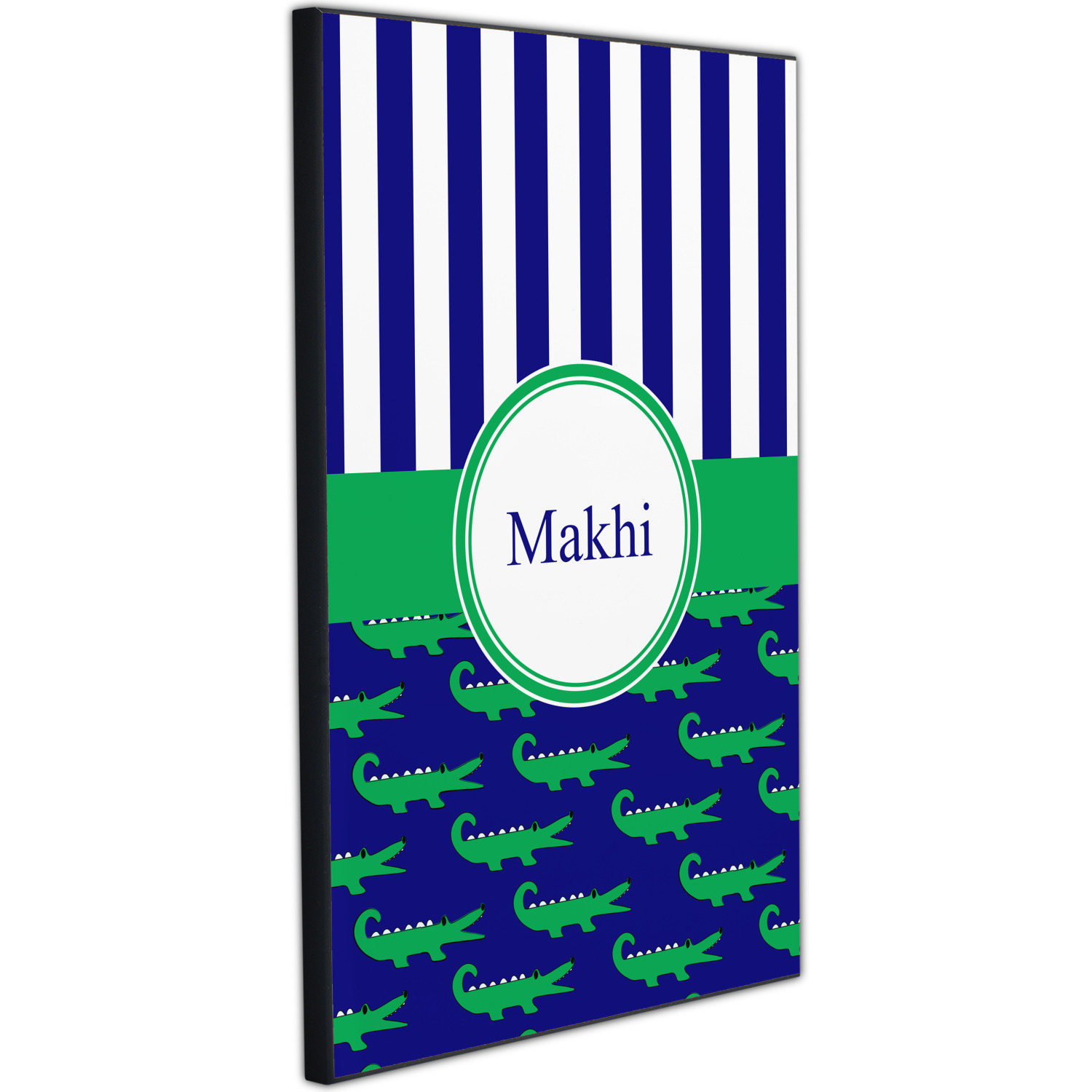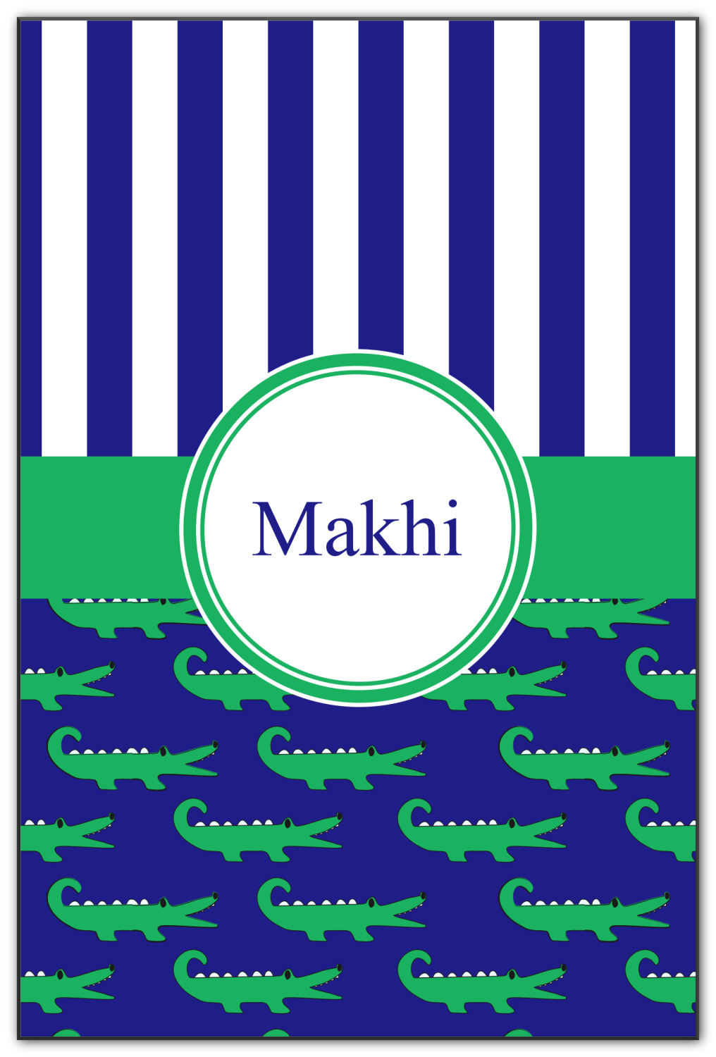 These are the sweetest alligators around! Our adorable green alligators pop and come alive on a blue background. To coordinate the alligator design a bold blue and white striped pattern is added to the top.
