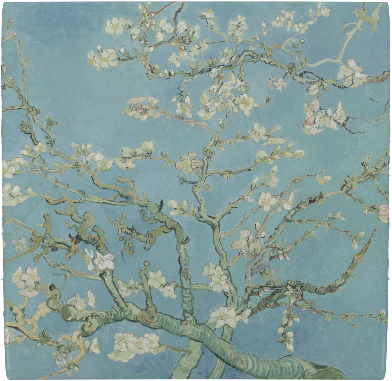 Almond Blossoms is from a group of several paintings made in 1888 and 1890 by Vincent van Gogh in Arles and Saint-Remy, southern France of blossoming almond trees. Flowering trees were special to van Gogh. They represented awakening and hope. He enjoyed them aesthetically and found joy in painting flowering trees. The works reflect the influence of Impressionism, Divisionism, and Japanese woodcuts. Almond Blossom was made to celebrate the birth of his nephew and namesake, son of his brother Theo and sister-in-law Jo. (source Wikipedia)