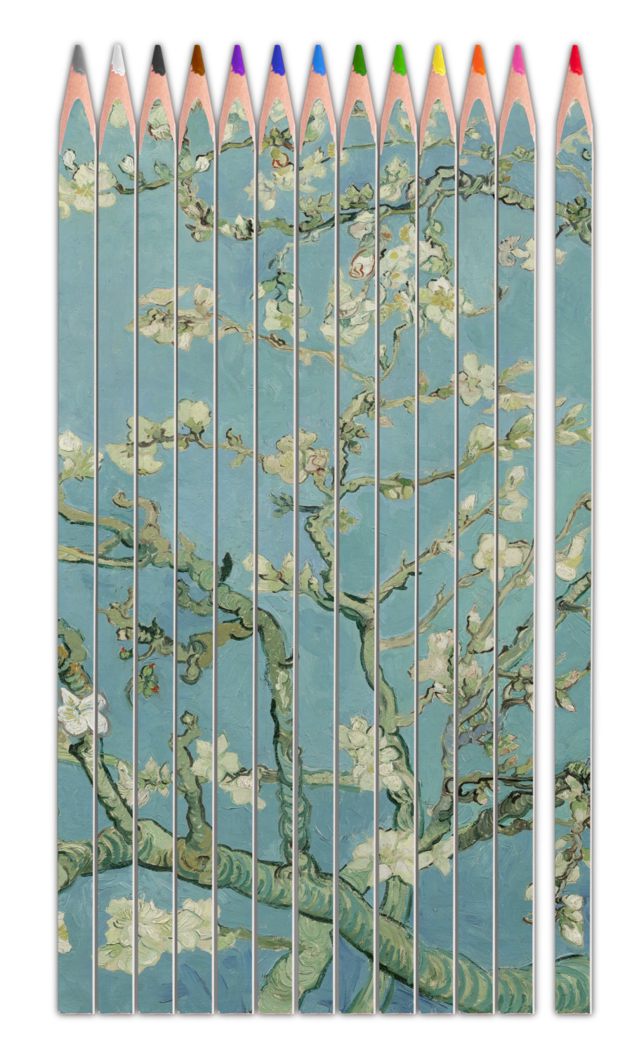 Almond Blossoms is from a group of several paintings made in 1888 and 1890 by Vincent van Gogh in Arles and Saint-Remy, southern France of blossoming almond trees. Flowering trees were special to van Gogh. They represented awakening and hope. He enjoyed them aesthetically and found joy in painting flowering trees. The works reflect the influence of Impressionism, Divisionism, and Japanese woodcuts. Almond Blossom was made to celebrate the birth of his nephew and namesake, son of his brother Theo and sister-in-law Jo. (source Wikipedia)