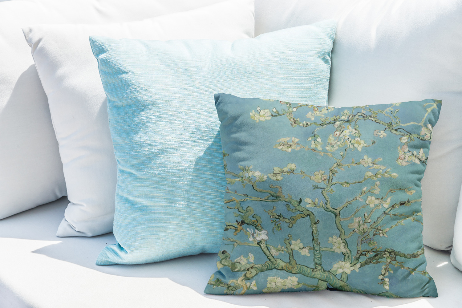 Almond Blossoms is from a group of several paintings made in 1888 and 1890 by Vincent van Gogh in Arles and Saint-Remy, southern France of blossoming almond trees. Flowering trees were special to van Gogh. They represented awakening and hope. He enjoyed them aesthetically and found joy in painting flowering trees. The works reflect the influence of Impressionism, Divisionism, and Japanese woodcuts. Almond Blossom was made to celebrate the birth of his nephew and namesake, son of his brother Theo and sister-in-law Jo. (source Wikipedia)