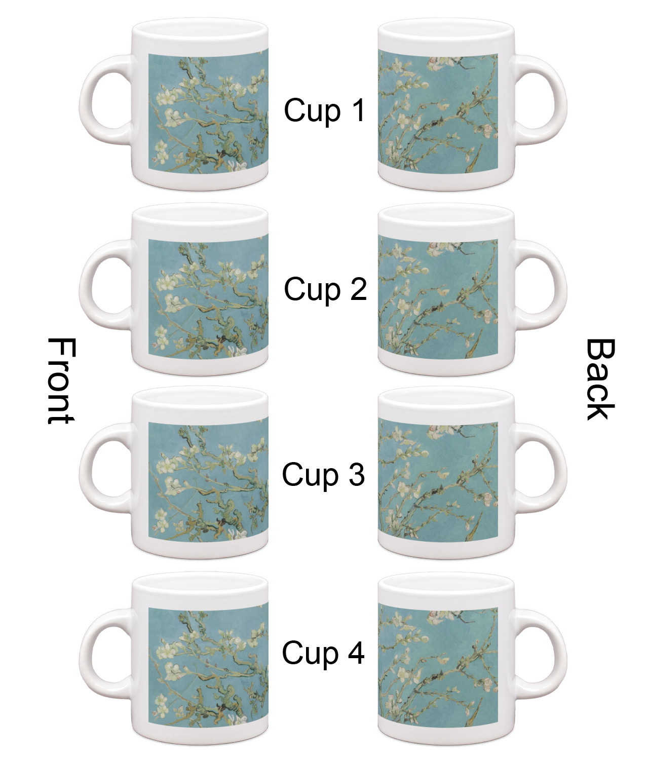 Each of our espresso mugs is a ceramic material sure to keep your drink warm. Personalize one cup for yourself, or order a set of 4! Its the perfect little gift for any coffee lover! We carry two sizes for you to personalize - 3 oz. (approx. 3.25" x 2.325" x 2.625") or 6 oz. (approx. 4" x 2.9" x 2.9"). Our 3 oz. mug is perfect for that single shot espresso while our 6 oz. mug can be your next favorite cappuccino cup holding two shots of espresso!