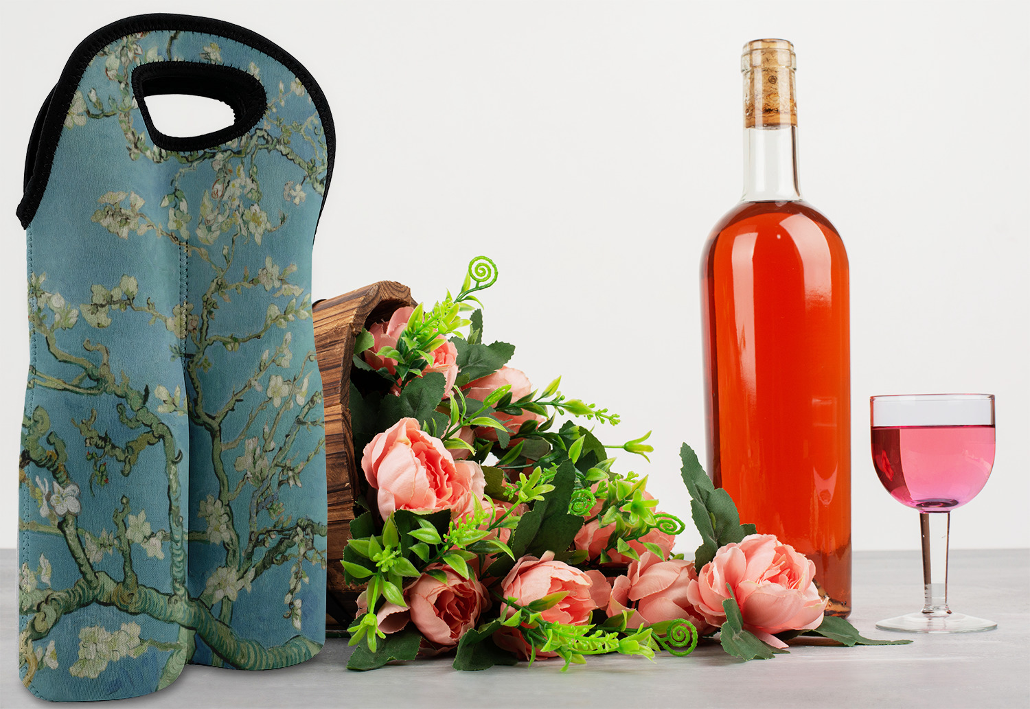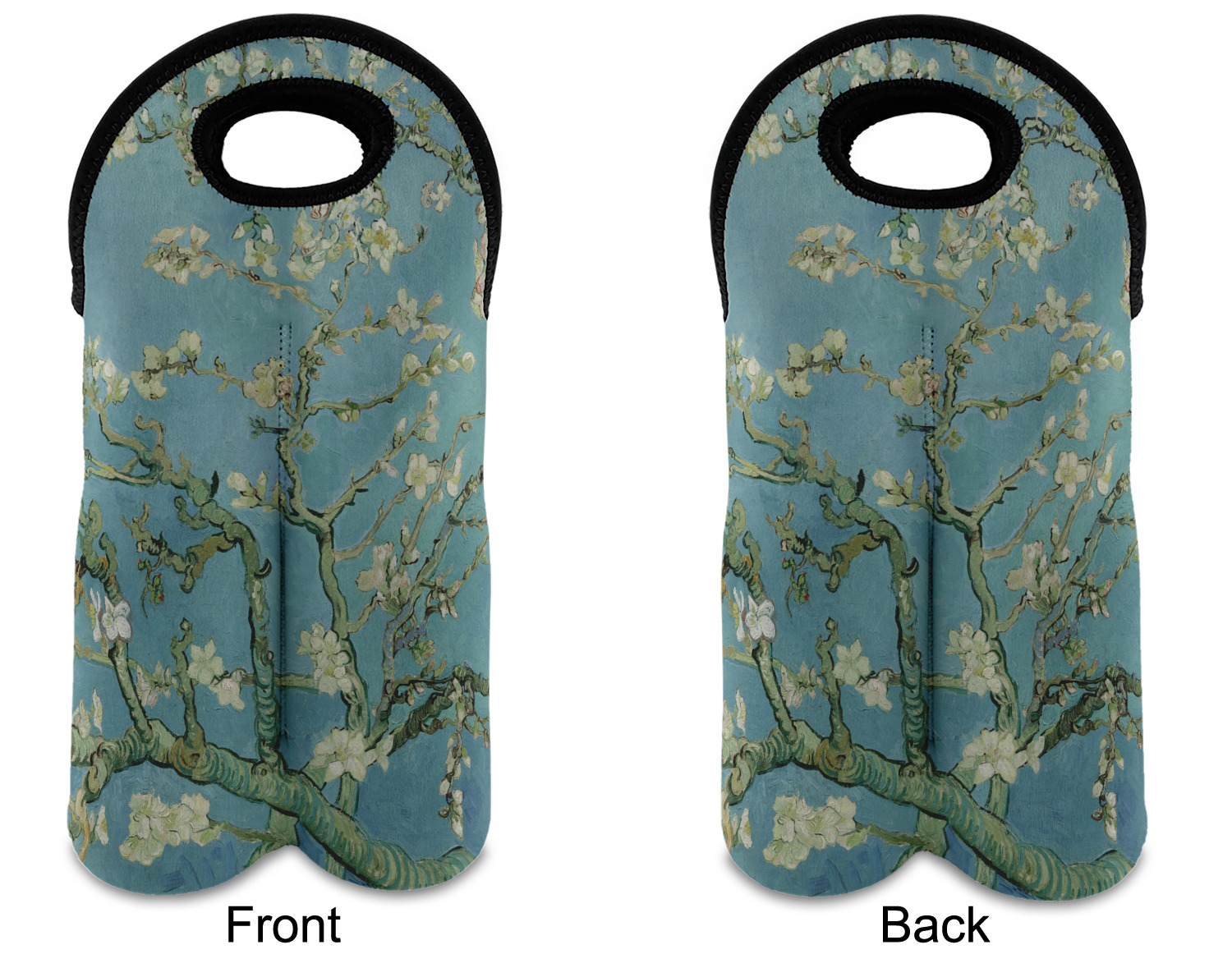These tote bags are insulated to keep the bottles cold and have a stitched separation down the middle and double handles to keep the two bottles safe and secure during travels.