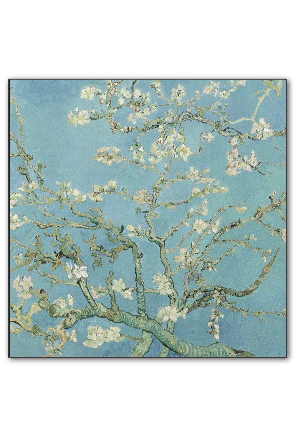 Almond Blossoms is from a group of several paintings made in 1888 and 1890 by Vincent van Gogh in Arles and Saint-Remy, southern France of blossoming almond trees. Flowering trees were special to van Gogh. They represented awakening and hope. He enjoyed them aesthetically and found joy in painting flowering trees. The works reflect the influence of Impressionism, Divisionism, and Japanese woodcuts. Almond Blossom was made to celebrate the birth of his nephew and namesake, son of his brother Theo and sister-in-law Jo. (source Wikipedia)