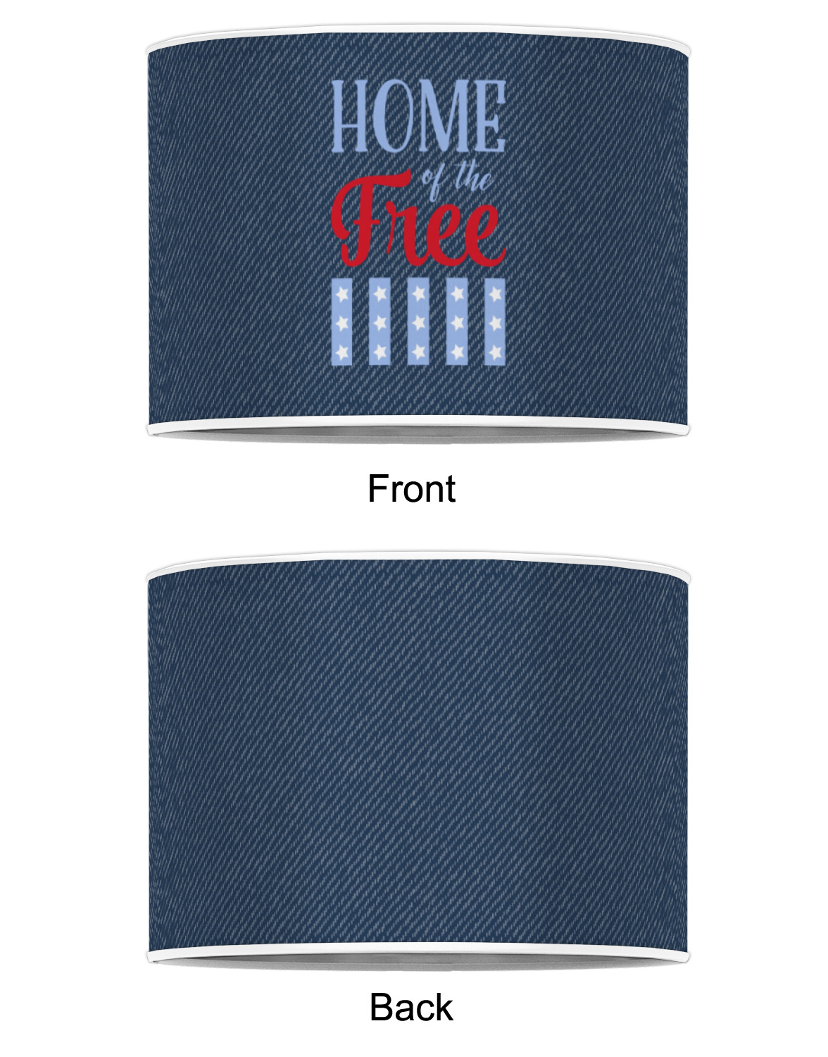 The background of this design is a dark blue denim, while the colors of the quote include a bright red, light blue, and white. The quote itself says "Home of the Free." On the coordinating design a red, white, and blue star is used with the the phrase "Land of the Brave" written underneath.