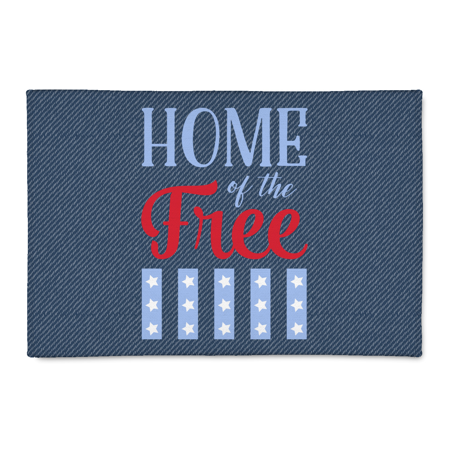 The background of this design is a dark blue denim, while the colors of the quote include a bright red, light blue, and white. The quote itself says "Home of the Free." On the coordinating design a red, white, and blue star is used with the the phrase "Land of the Brave" written underneath.