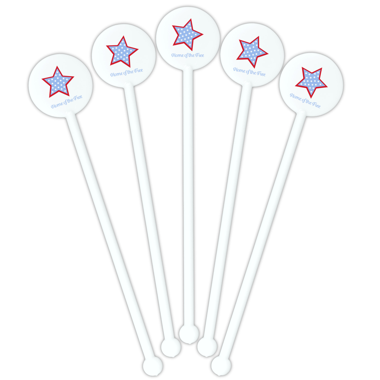 America / USA Designs for 5.5" Round Plastic Stir Sticks - White - Single-Sided