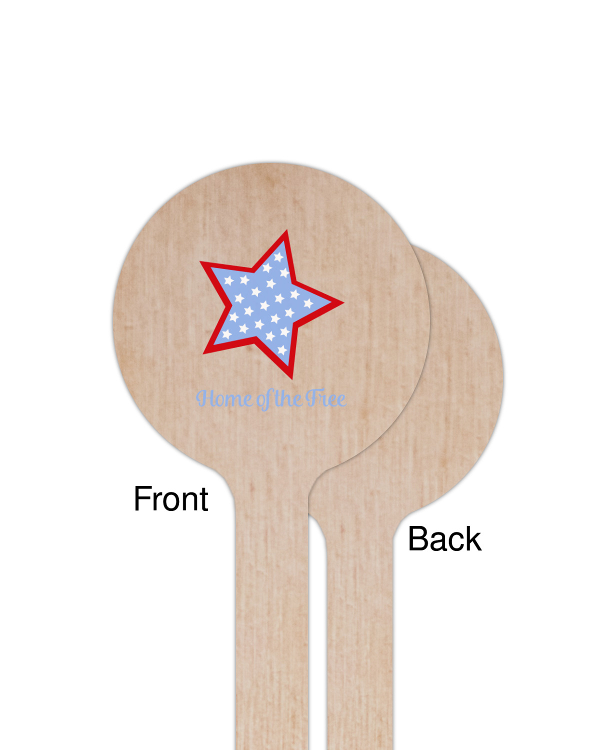 The background of this design is a dark blue denim, while the colors of the quote include a bright red, light blue, and white. The quote itself says "Home of the Free." On the coordinating design a red, white, and blue star is used with the the phrase "Land of the Brave" written underneath.