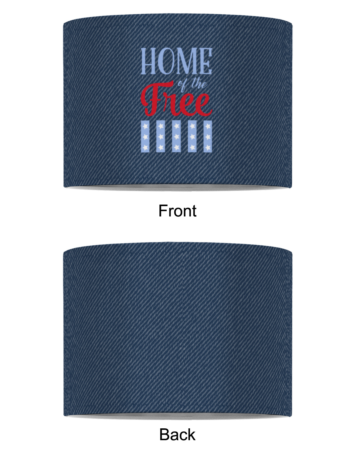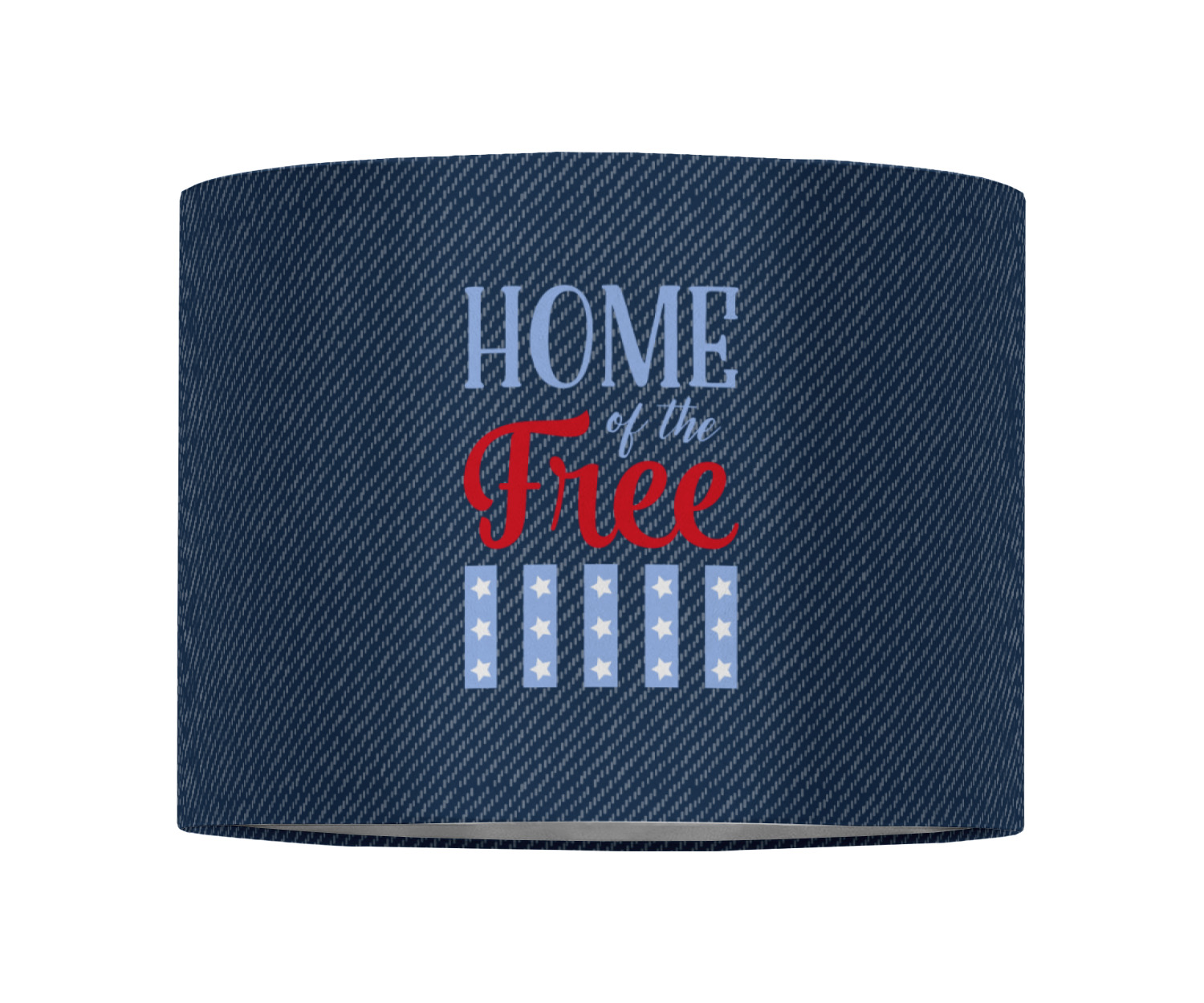 The background of this design is a dark blue denim, while the colors of the quote include a bright red, light blue, and white. The quote itself says "Home of the Free." On the coordinating design a red, white, and blue star is used with the the phrase "Land of the Brave" written underneath.