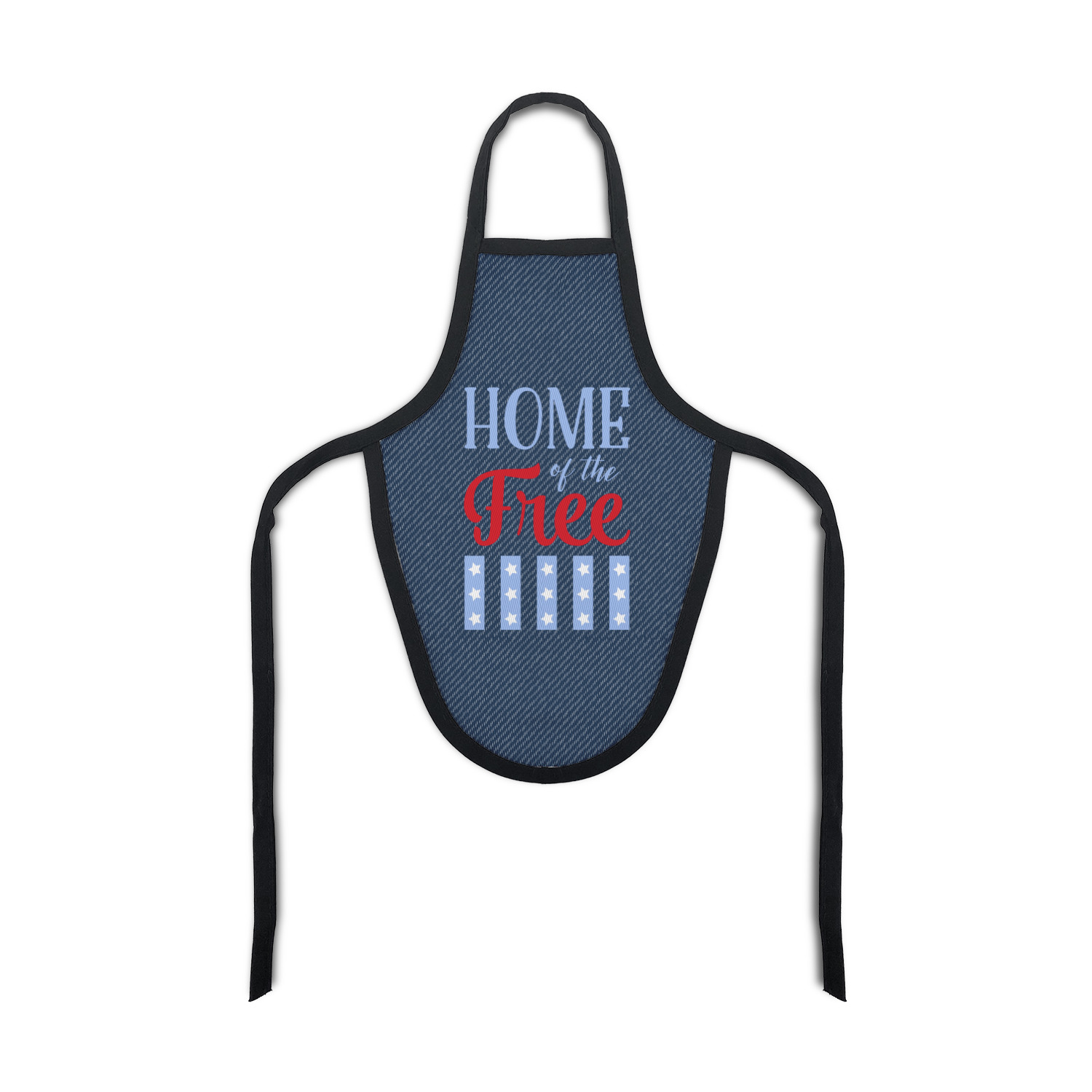 The background of this design is a dark blue denim, while the colors of the quote include a bright red, light blue, and white. The quote itself says "Home of the Free." On the coordinating design a red, white, and blue star is used with the the phrase "Land of the Brave" written underneath.