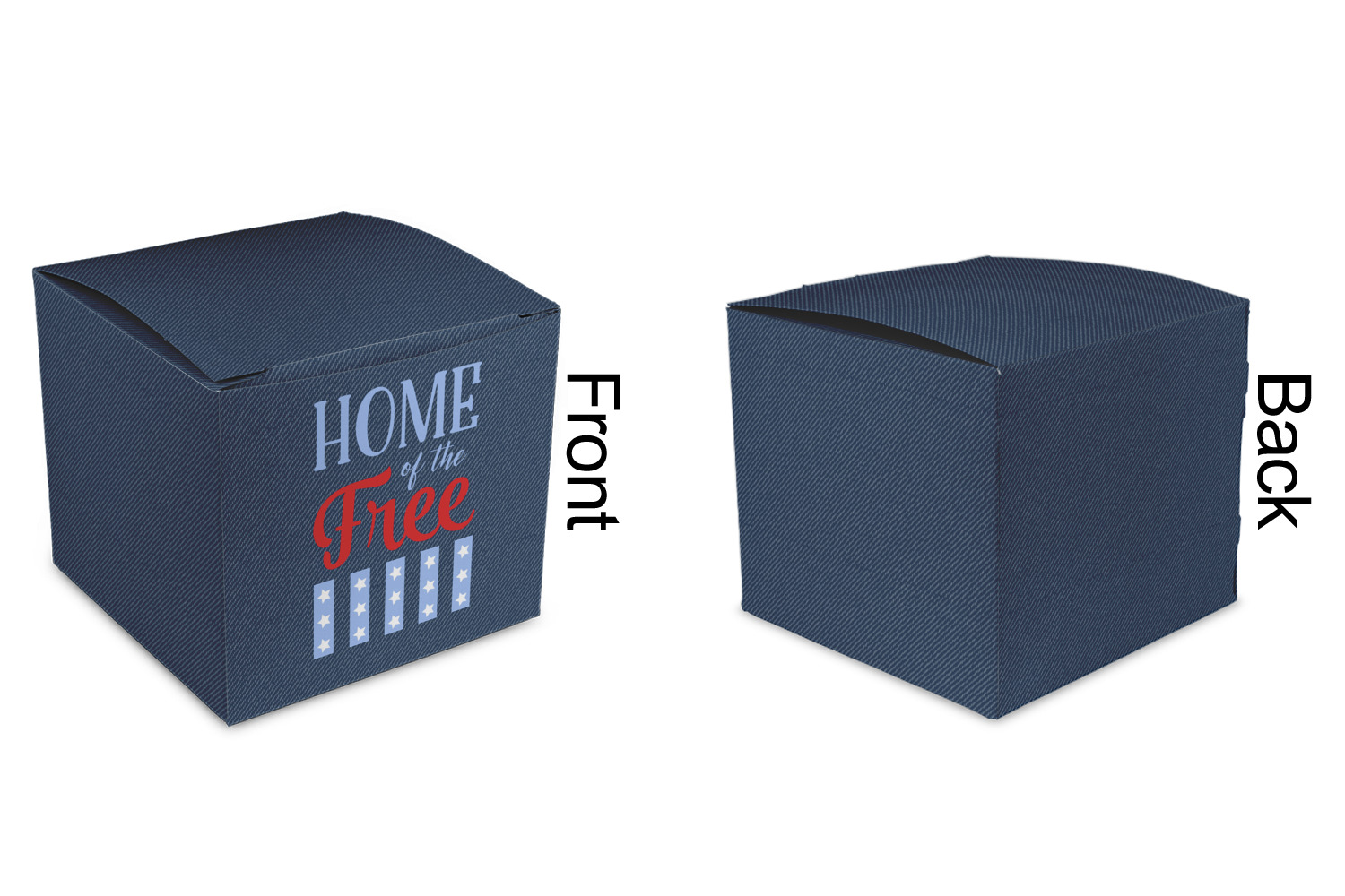 These cubic favor boxes are printed in full color on premium heavyweight cardstock that has a smooth semi-gloss finish.