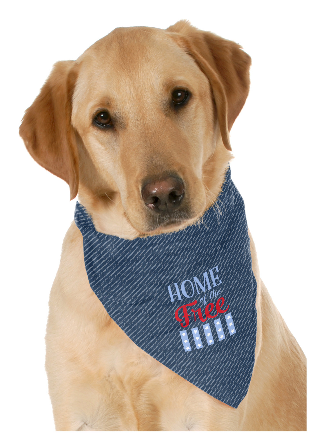 This beautiful pet bandana really is the perfect accessory. It is made from a silky feeling polyester and measures at approximately 23" x 23". Your personalization will be printed on a diagonal, so that you are able to read the personalization when folded into a triangle. This bandana fits best on large dogs, but can be folded smaller if there is no personalized text to fit smaller pets.
