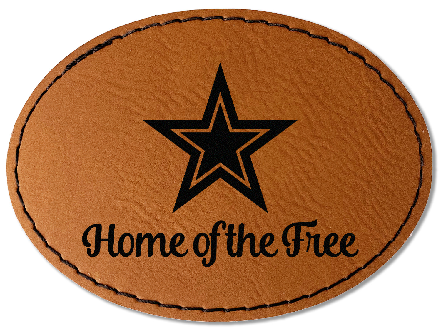 Our leather patches come in 4 different shapes - Square (3" x 3"), Round (3" x 3"), Oval (3.5" x 2.5"), Rectangle (3.5" x 2.5") and a beautiful rich brown rawhide or cognac color.