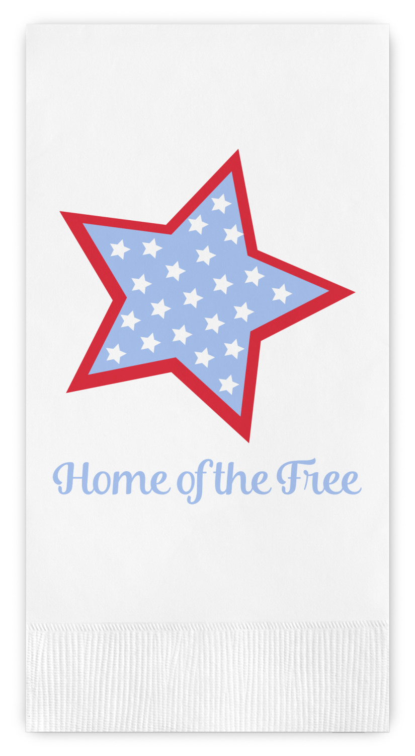 The background of this design is a dark blue denim, while the colors of the quote include a bright red, light blue, and white. The quote itself says "Home of the Free." On the coordinating design a red, white, and blue star is used with the the phrase "Land of the Brave" written underneath.