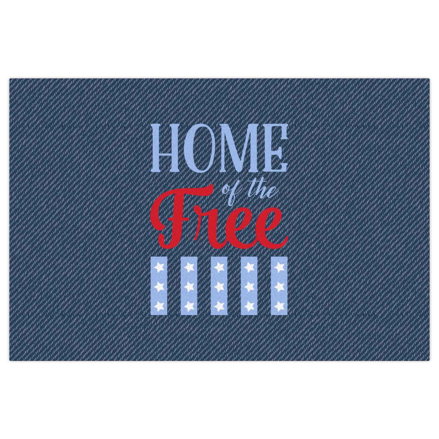 The background of this design is a dark blue denim, while the colors of the quote include a bright red, light blue, and white. The quote itself says "Home of the Free." On the coordinating design a red, white, and blue star is used with the the phrase "Land of the Brave" written underneath.