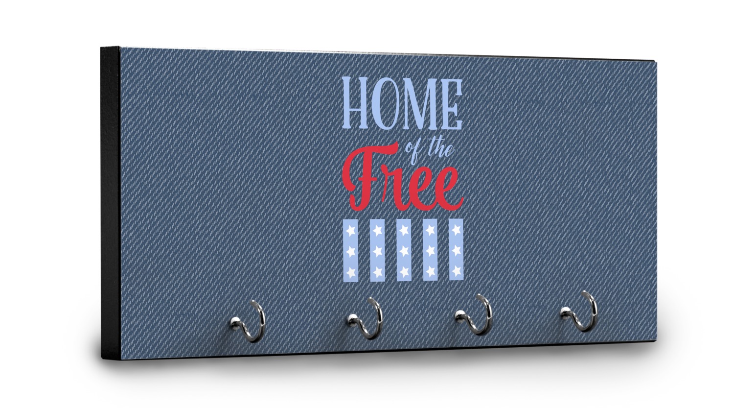 This 11" x 5" key hanger is made of sturdy wood and has four metal hooks lining the bottom. This is the perfect size for a family with several drivers. Not only can you hang keys on it though, but pet leashes and other small items. The board is black on the sides and back and is printed with the design of your choice on the front.