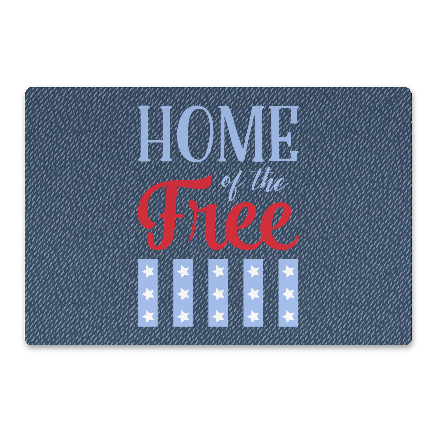 The background of this design is a dark blue denim, while the colors of the quote include a bright red, light blue, and white. The quote itself says "Home of the Free." On the coordinating design a red, white, and blue star is used with the the phrase "Land of the Brave" written underneath.
