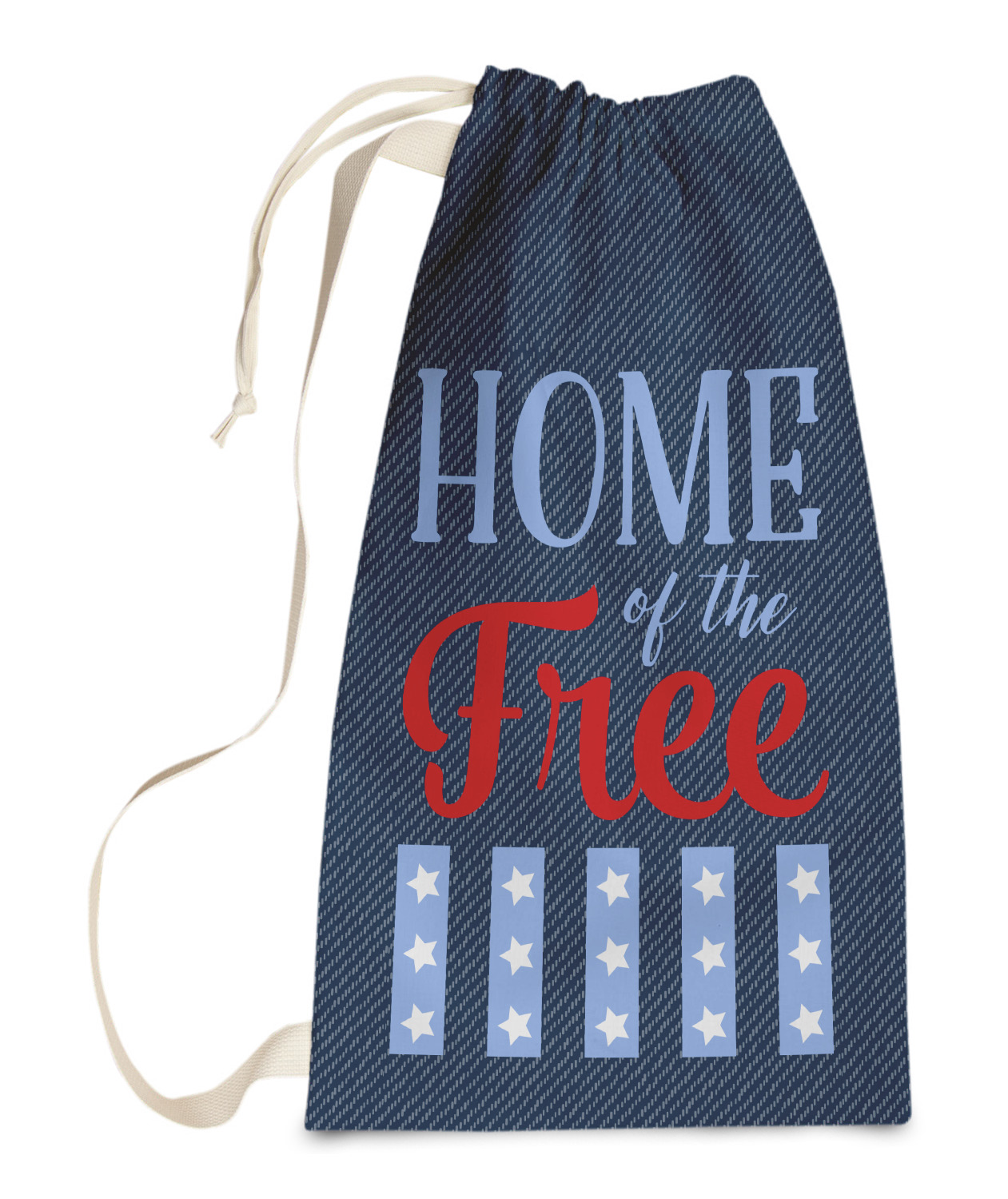 Our laundry bags are handmade in the USA; The fabric is printed using dye sublimation. The fabric is then cut and the grommets are added for the drawstring closure. The laundry bag is then sewn and the drawstring is fed through and knotted to create the cinch closure.