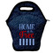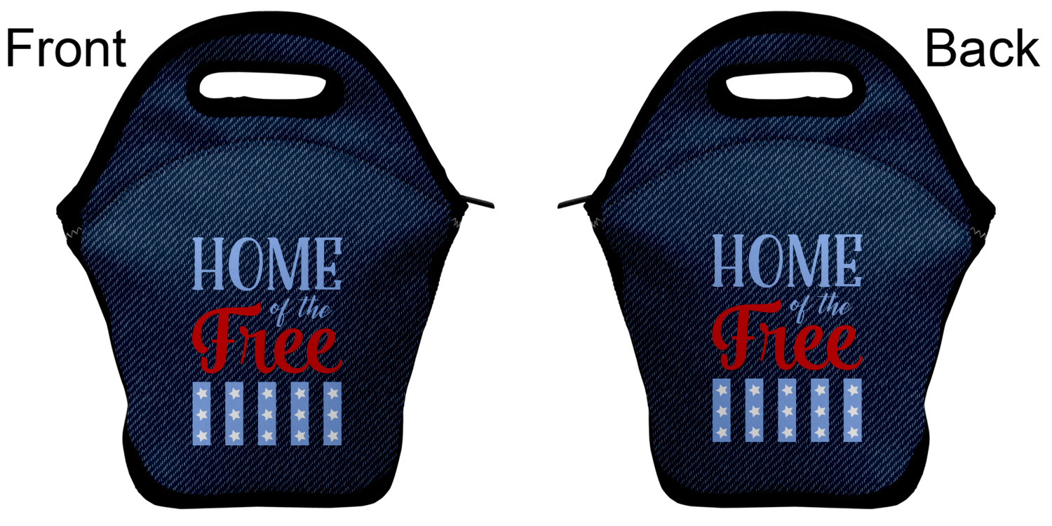 Our personalized lunch bags are made from a strong neoprene, and secure with a zipper closure that lines the top of the bag.The edges of the neoprene are sewn together with a heavy duty stitch, adding to the durability of the bag. The is accompanied by a reinforced handle at its top, for the easy transport of your lunch. We display your personalization across both the front and back of this neoprene lunch bag, while the remaining sides are a sleek black in color. Each bag measures at 13.5 inches tall, and 11.5 inches wide.