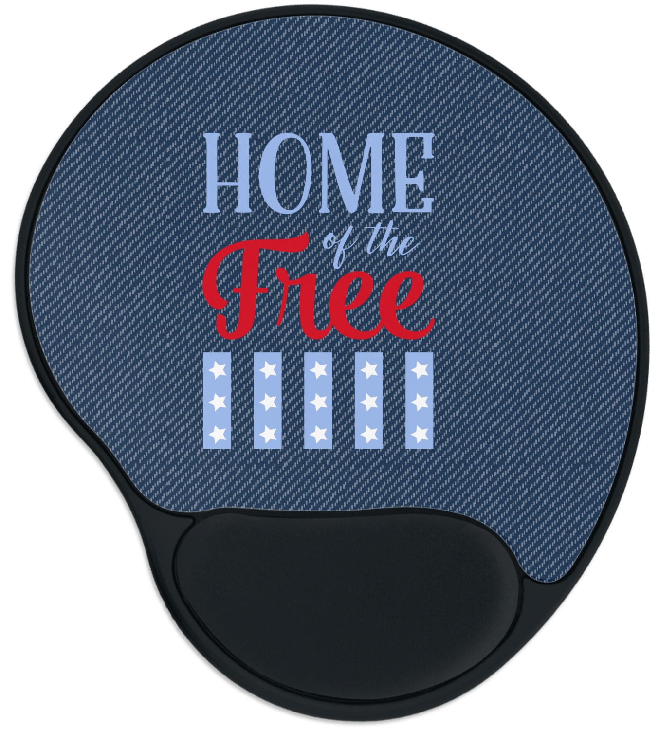 The top of these personalized mouse pads are made from a polyester, while the underside is plastic. The back of these mouse mats include rubber feet to prevent any slippage while in use. A padded wrist support, made from plush memory foam, occupies the bottom section of these computer mouse pads. Your customized design is printed onto the face of this mat, with the remaining sides and support piece colored in black. The mat itself is rounded and measures at 10.25" x 9.13".