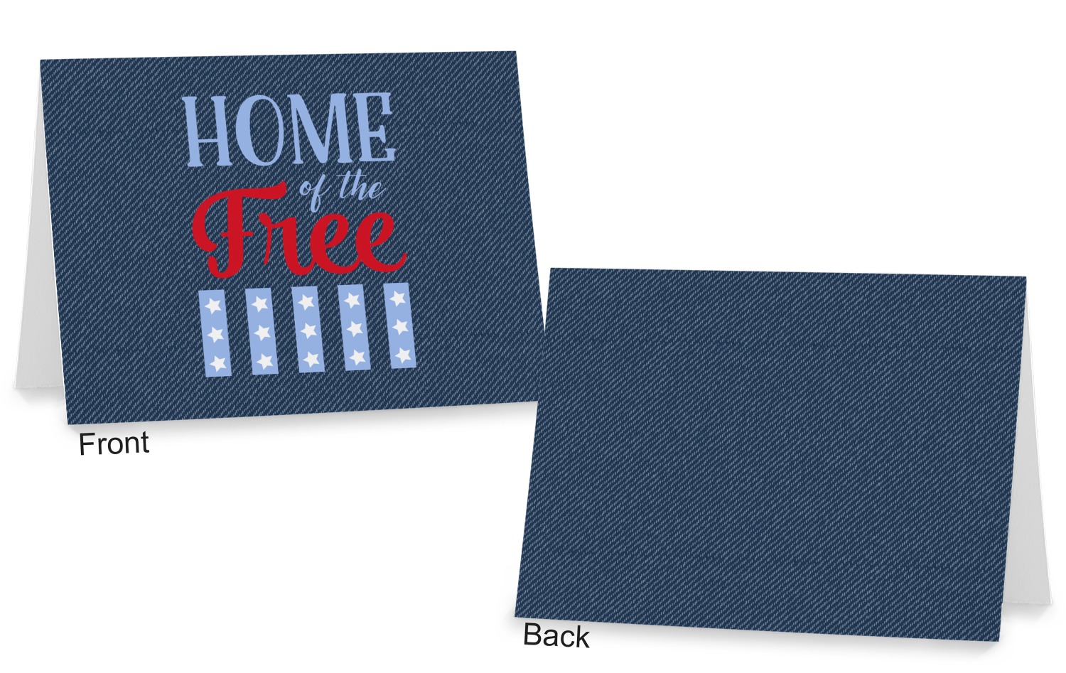 The background of this design is a dark blue denim, while the colors of the quote include a bright red, light blue, and white. The quote itself says "Home of the Free." On the coordinating design a red, white, and blue star is used with the the phrase "Land of the Brave" written underneath.