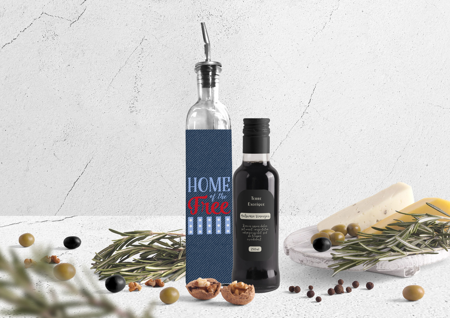 Made from recycled glass in Spain, these oil bottles have a classic, delicate look, and are accompanied by a metal spout for controlled pouring. Each bottle holds approximately 13 ounces and measures at 12 by 2 inches. We customize your glass oil bottle by applying your personalized design on the front and sides, using an adhesive. Our customizable stickers are made from high quality, gloss vinyl and are printed with waterproof, eco-solvent inks. These pieces are machine cut for accuracy and symmetry. The result is a robust, waterproof, adhesive decal that will not fade or deteriorate with time.