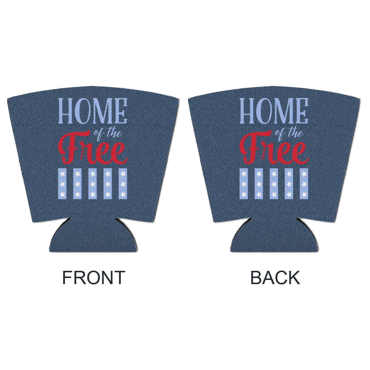 The background of this design is a dark blue denim, while the colors of the quote include a bright red, light blue, and white. The quote itself says "Home of the Free." On the coordinating design a red, white, and blue star is used with the the phrase "Land of the Brave" written underneath.