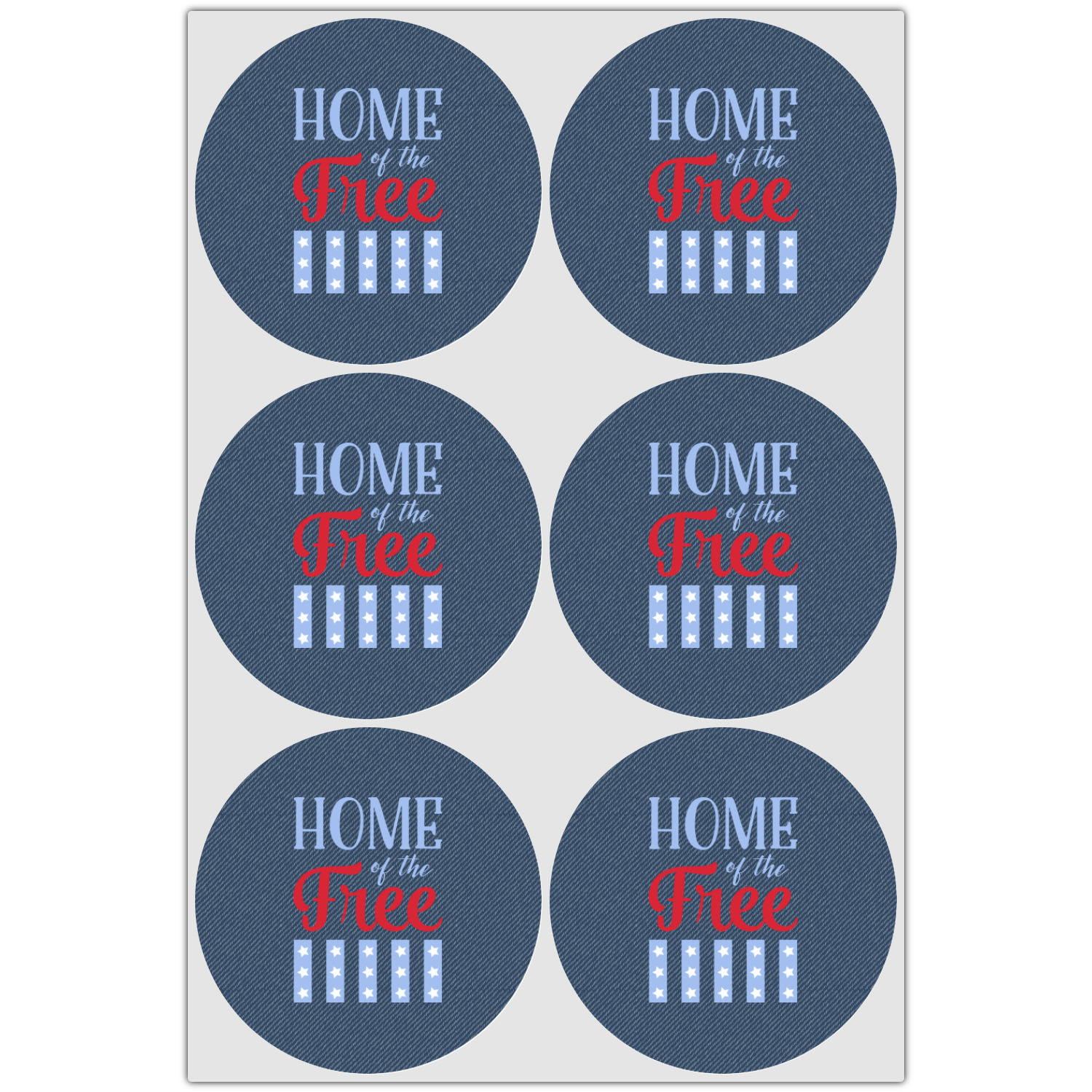 The background of this design is a dark blue denim, while the colors of the quote include a bright red, light blue, and white. The quote itself says "Home of the Free." On the coordinating design a red, white, and blue star is used with the the phrase "Land of the Brave" written underneath.