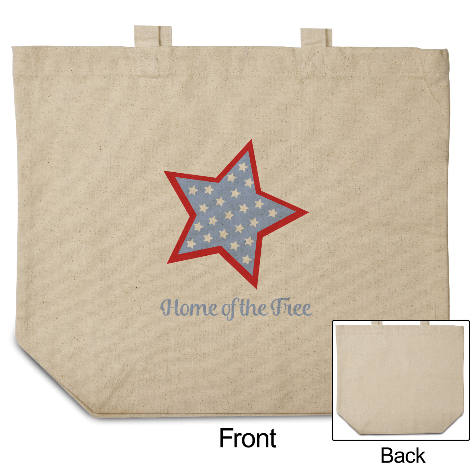 These cotton totes are washable and easy to care for, and they can be folded flat for storage. Your artwork, logo, or photo is printed in full color directly on the cotton tote in the front.