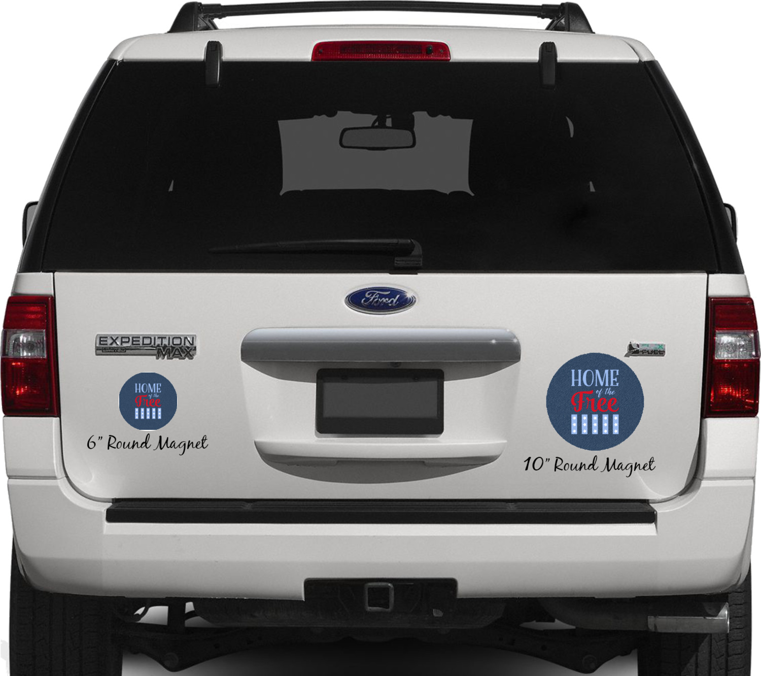 Your personalized car magnets are available for purchase in two shapes and two sizes. We carry round and square editions; each shape can either be 6 by 6 inches, or 10 by 10 inches, depending on your needs. Both versions are 1 millimeter thick, which is considered, within the industry, as the ideal thickness for automobile magnets. The magnetic car decals will adhere to any smooth, metal surface of your cars body, such as the trunk door or a side panel. However, please note that some vehicles are constructed from fiberglass bodies, which prevents the adhesion of anything magnetic. We advise that you test your vehicle before purchasing these magnets.