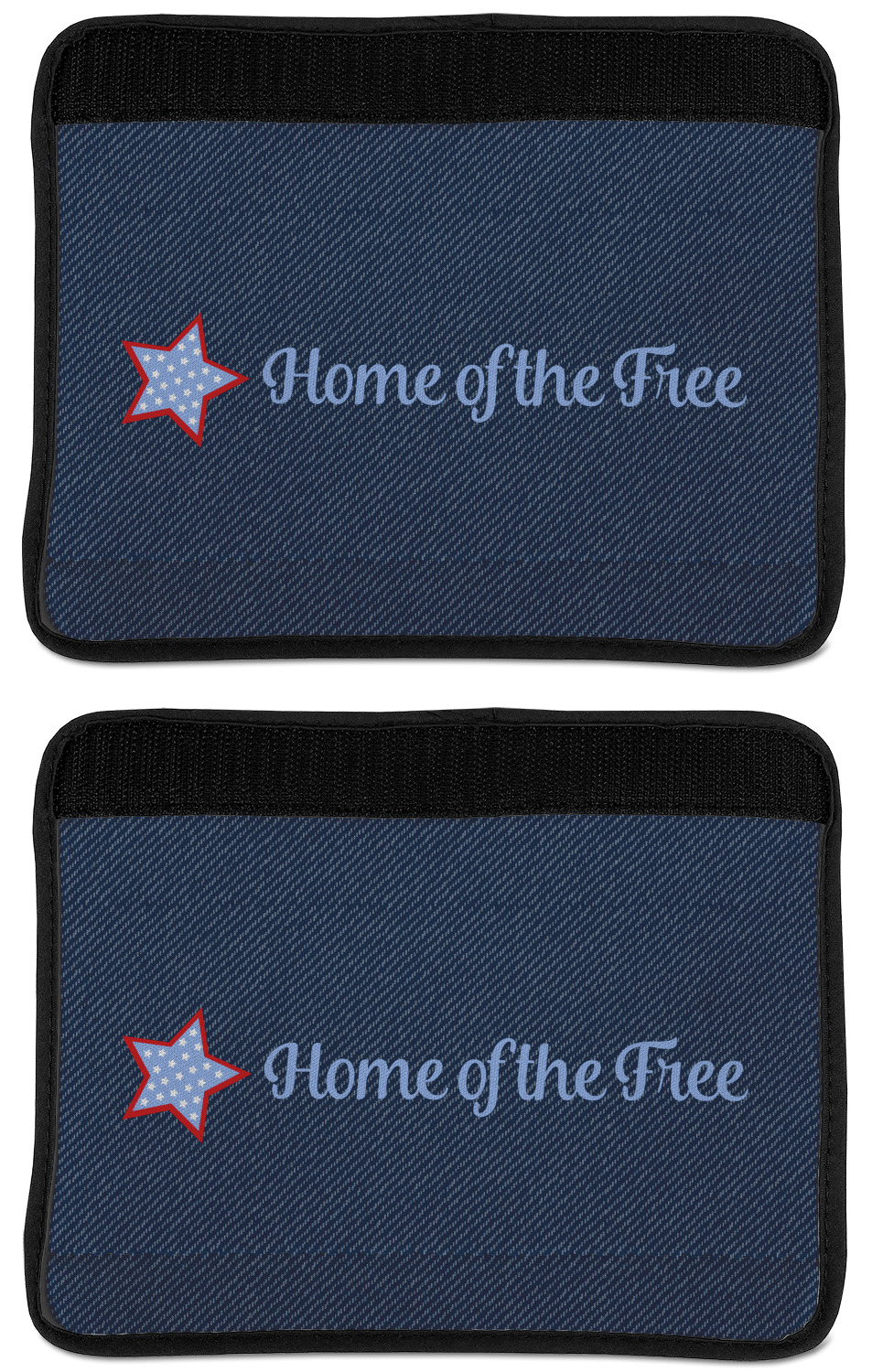Made from neoprene, our seat belt strap covers wrap around the belt itself and have a Velcro tab for easy attachment and closure. The belt's edges are trimmed with a black polyester for a secure finish. Each cover is 9.5 by 7 inches when open and 9.5 by 2.5 inches when closed. We print your personalized design on the face of the seat belt pad.