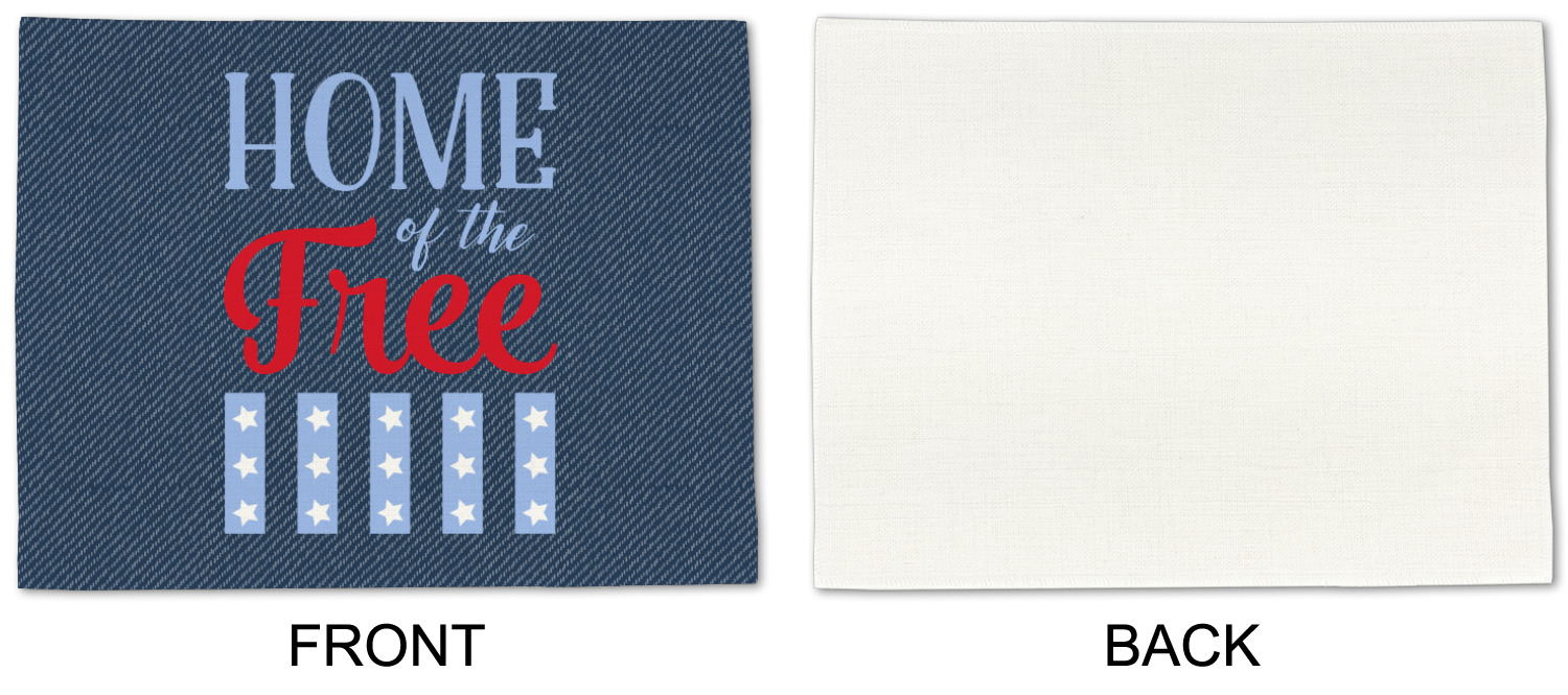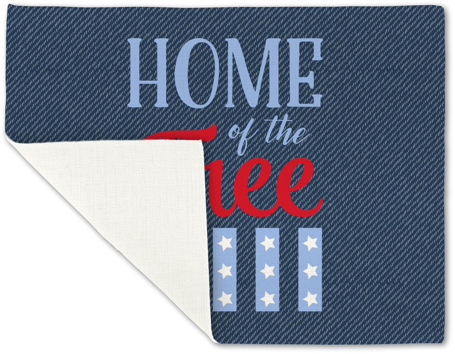 The background of this design is a dark blue denim, while the colors of the quote include a bright red, light blue, and white. The quote itself says "Home of the Free." On the coordinating design a red, white, and blue star is used with the the phrase "Land of the Brave" written underneath.