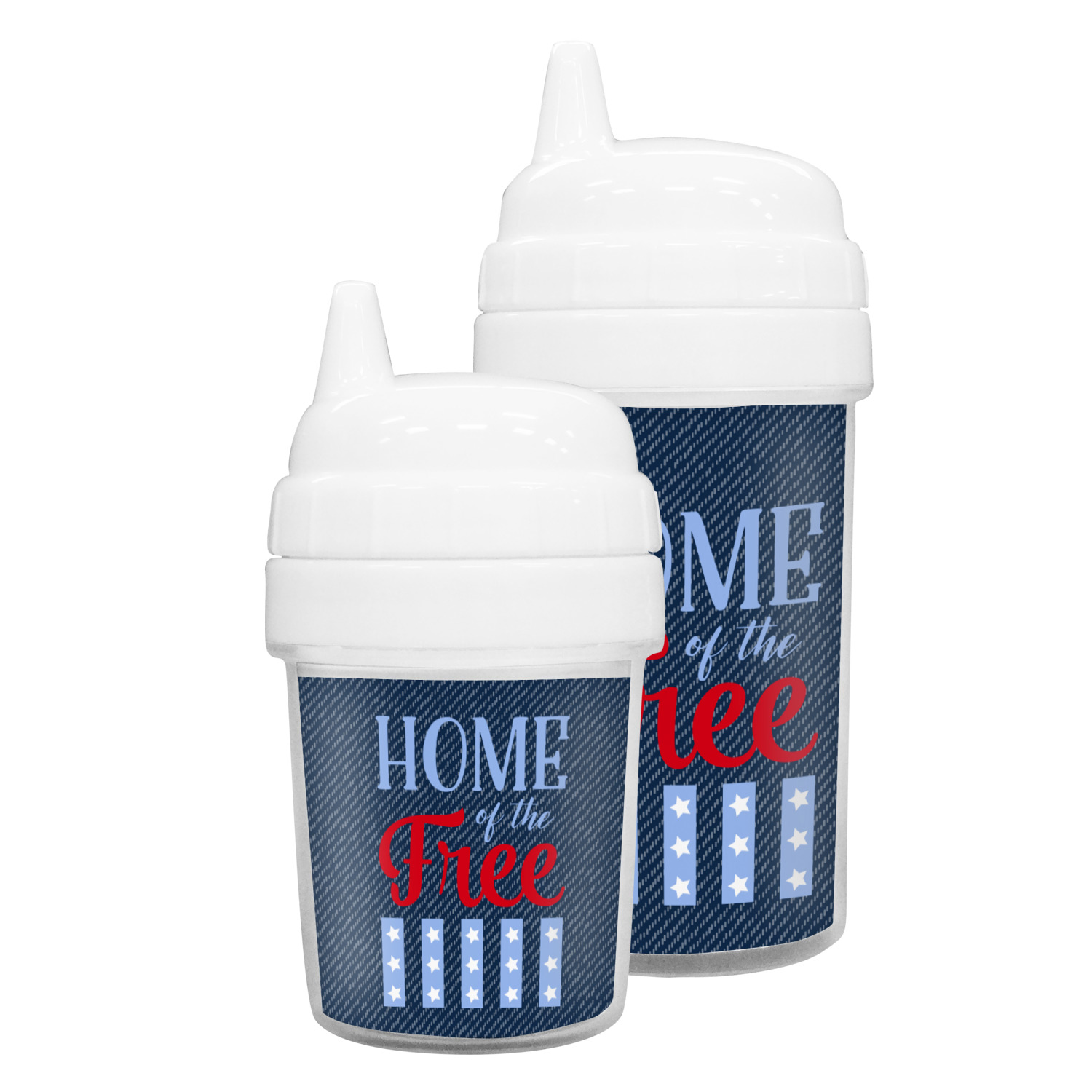 Our toddler cups are free of BPA, and have a twist-open lid so that you can easily fill and clean these cups for your young ones. Each cup also comes with a sippy nozzle to reduce spills. We offer these custom sippy cups in two different sizes; we have a baby sippy cup that holds 5 ounces, and a toddler sippy cup that holds 10 ounces. Your customization is printed on a premium glossy media insert that is placed within these toddler drinking cups.