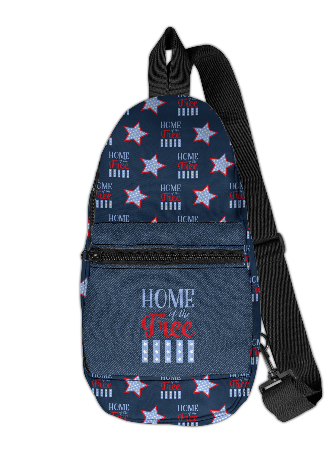 These sling bags are made from a durable polyester canvas. The fabric is printed with your design, then cut and hand sewn right here in the USA.