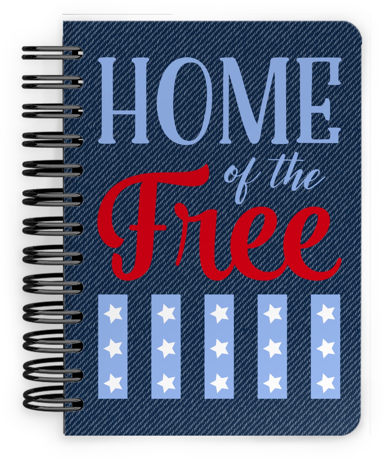 This spiral notebook includes 75 sheets of thick, ruled paper. The front and back of this custom notebook is made of a robust, laminate, plastic covering. We print your personalization on these two panels, underneath a glossy finish, which emphasizes the colors of your design. The two panels and the sheets of paper are held together by a sturdy, black coil. The paper within your bound notebook is perforated for easy, clean tearing.