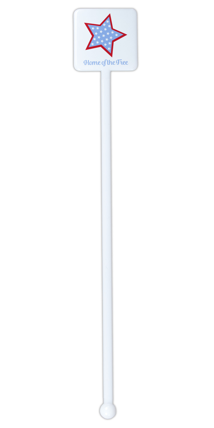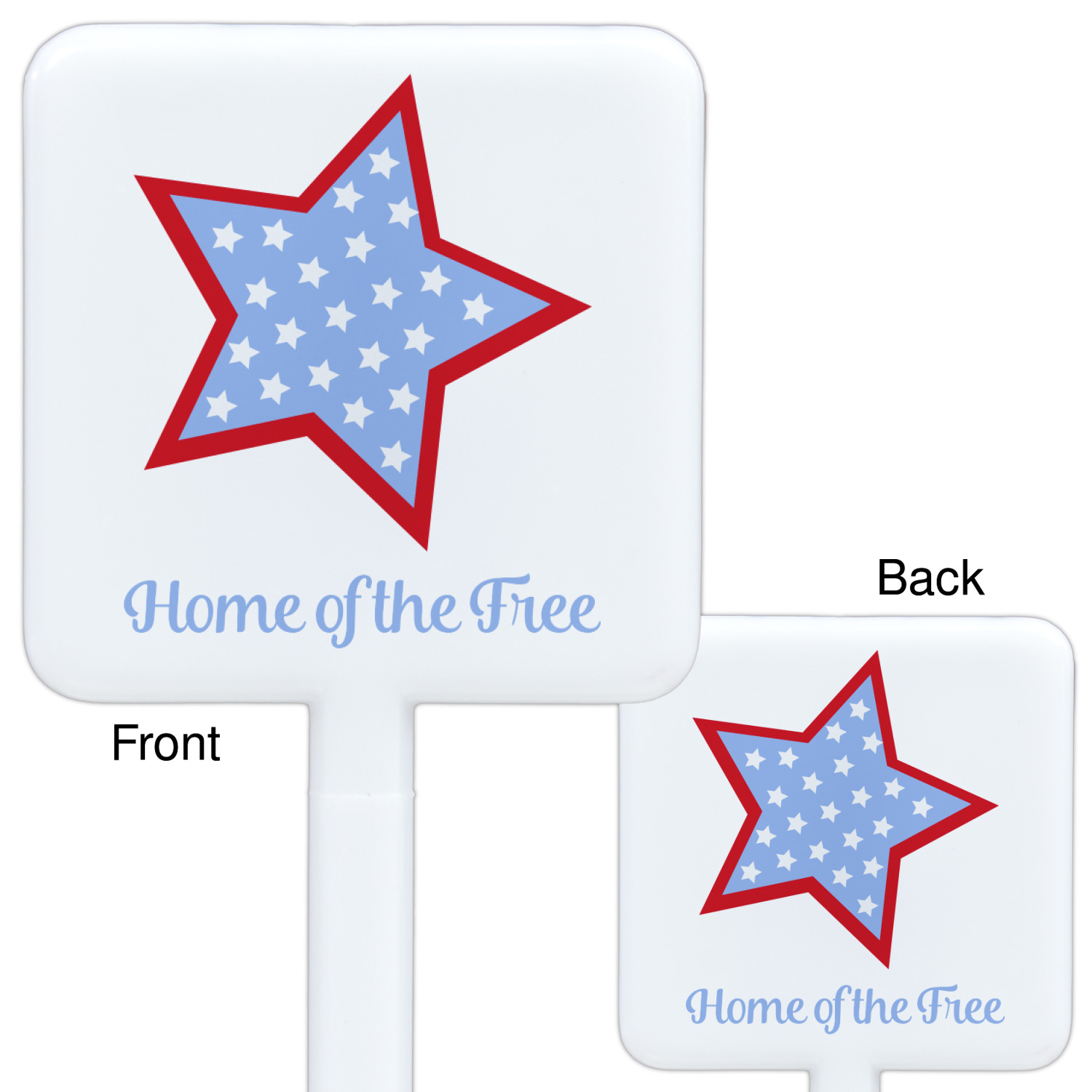 The background of this design is a dark blue denim, while the colors of the quote include a bright red, light blue, and white. The quote itself says "Home of the Free." On the coordinating design a red, white, and blue star is used with the the phrase "Land of the Brave" written underneath.