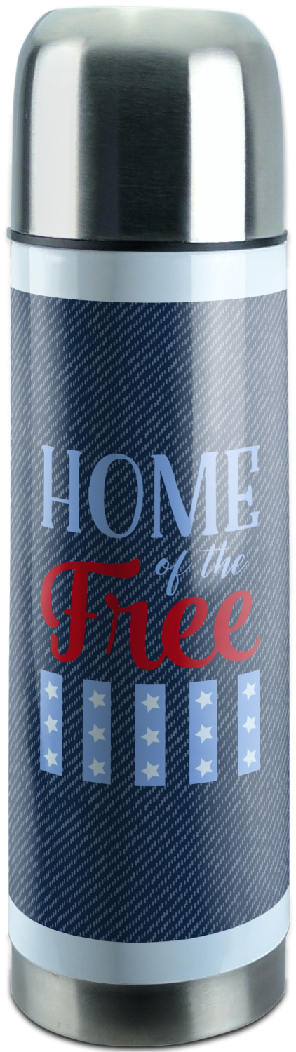 Manufactured from stainless steel, this thermos is built durably and double-walled insulated to preserve the temperature of your drink for hours. It also features a screw off lid that is made to also function as a small cup. Upon unscrewing this part of the thermos bottle, a pop-open, pour feature emerges. This feature allows you to slowly pour your beverage into your lid, ensuring a steady, controlled pour into your lid or other cup. With a capacity of 25 ounces, these large thermoses can hold several servings of your favorite beverage. Your customization is displayed all around the bottle with bright, vibrant color.