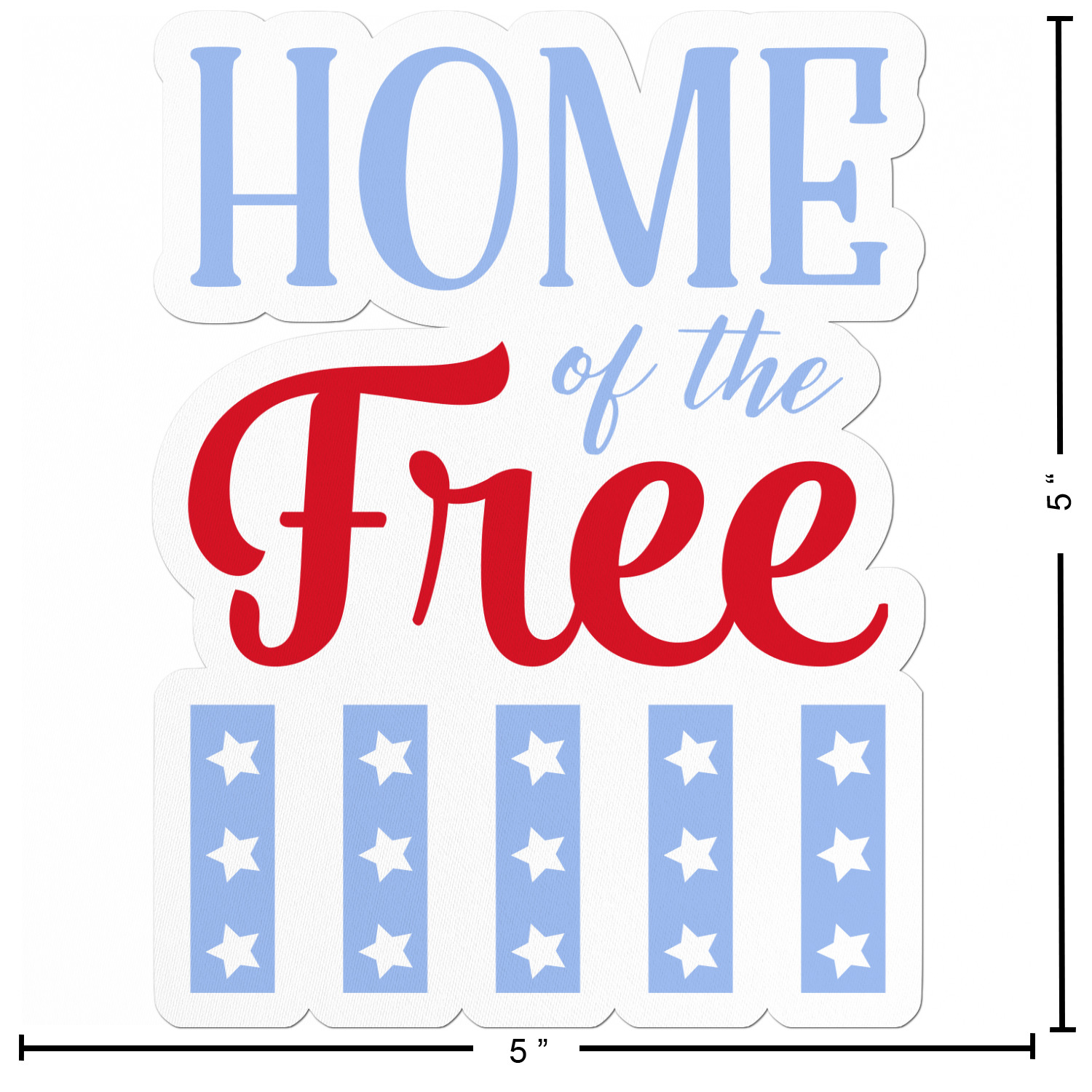The background of this design is a dark blue denim, while the colors of the quote include a bright red, light blue, and white. The quote itself says "Home of the Free." On the coordinating design a red, white, and blue star is used with the the phrase "Land of the Brave" written underneath.