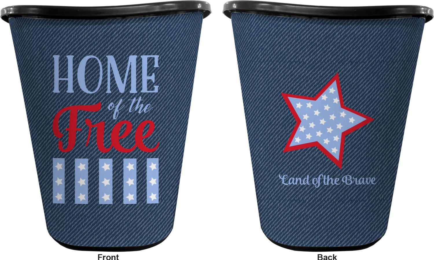 You can choose to purchase these decorative wastebaskets in either a white or a black color that will show on the base and the upper rim. Your customization is printed on a high-gloss, fine-quality vinyl adhesive, and you can choose to either have this adhesive applied to one side only or to both sides. As such, this plastic wastebasket can be single-sided or double-sided, depending on your creative vision. Your customization is printed using durable inks, making the design waterproof and resistant to fading over time.