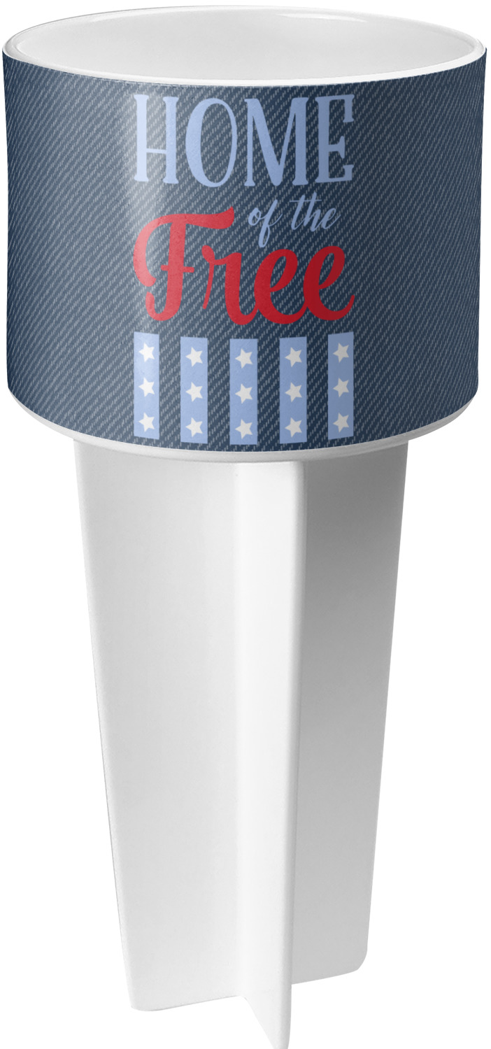 This cup holder has a large stake at its bottom that anchors it to the sand or ground below, while the cup holder rests above the stake. The entire drink holder is made of durable plastic and displays your customization around the cup holder portion. We sell these personalized beach spikers in two different colors: black and white.