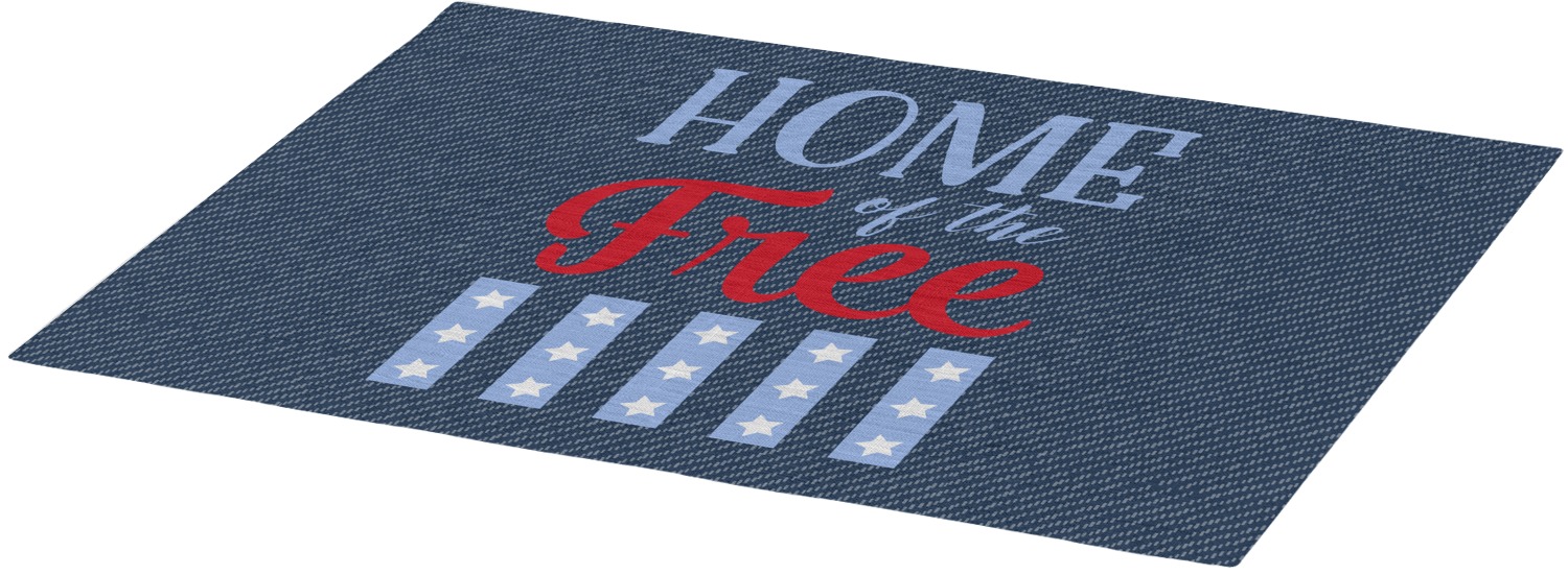Each of our table mats are a poly twill material with woven burlap detailing. This creates a soft, quality placemat for us to fully print your personalized design across. The woven twill also adds a wrinkle-free surface to set your table! Each customizable placemat is a rectangle shape measuring at approximately 13 x 18 and printed here in the USA.