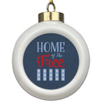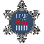 The background of this design is a dark blue denim, while the colors of the quote include a bright red, light blue, and white. The quote itself says "Home of the Free." On the coordinating design a red, white, and blue star is used with the the phrase "Land of the Brave" written underneath.