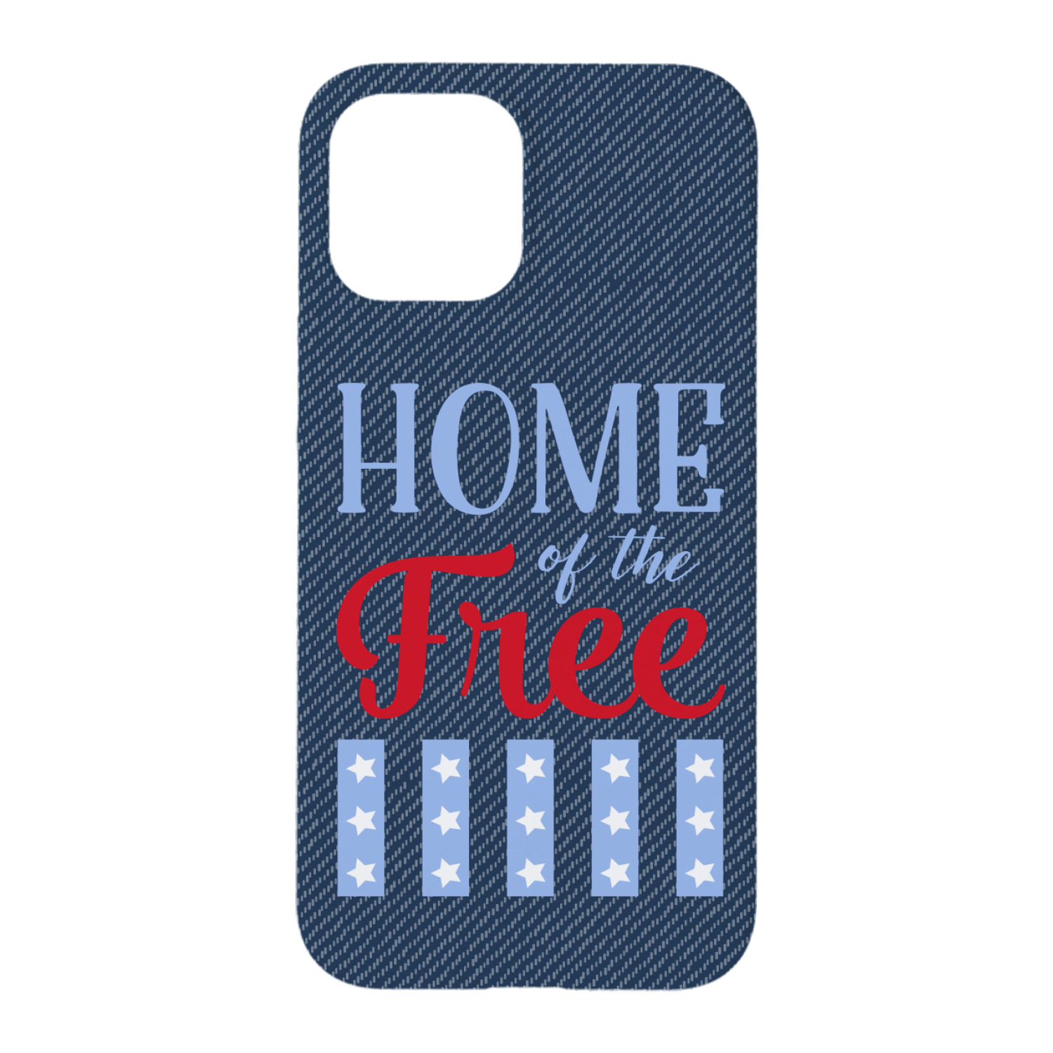 The background of this design is a dark blue denim, while the colors of the quote include a bright red, light blue, and white. The quote itself says "Home of the Free." On the coordinating design a red, white, and blue star is used with the the phrase "Land of the Brave" written underneath.