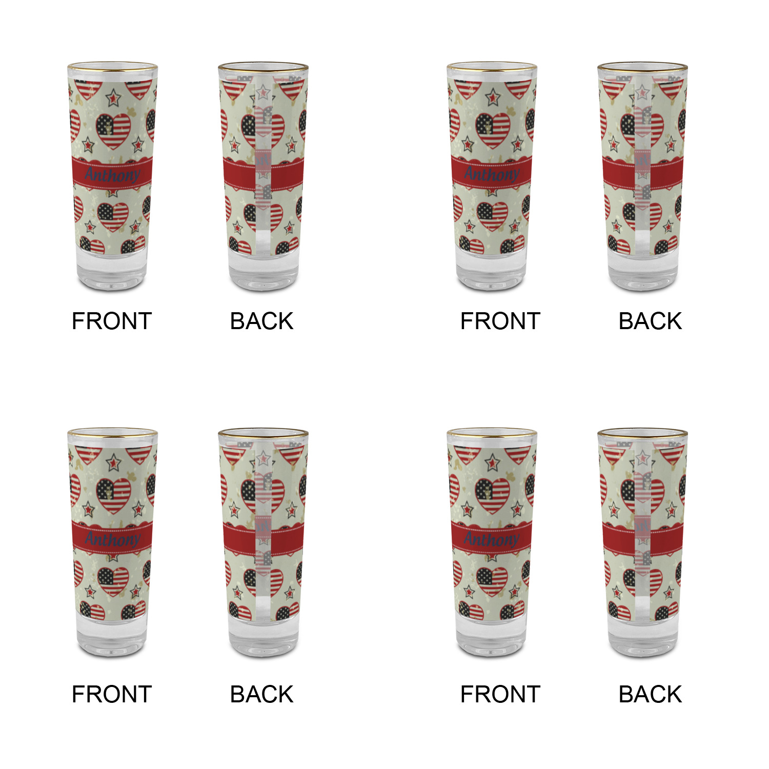 America / USA Designs for 2 oz Shot Glasses - Glass with Gold Rim