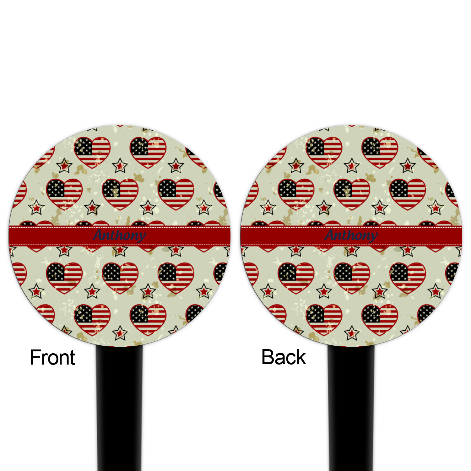 America / USA Designs for 4" Round Plastic Food Picks - Black - Double-Sided