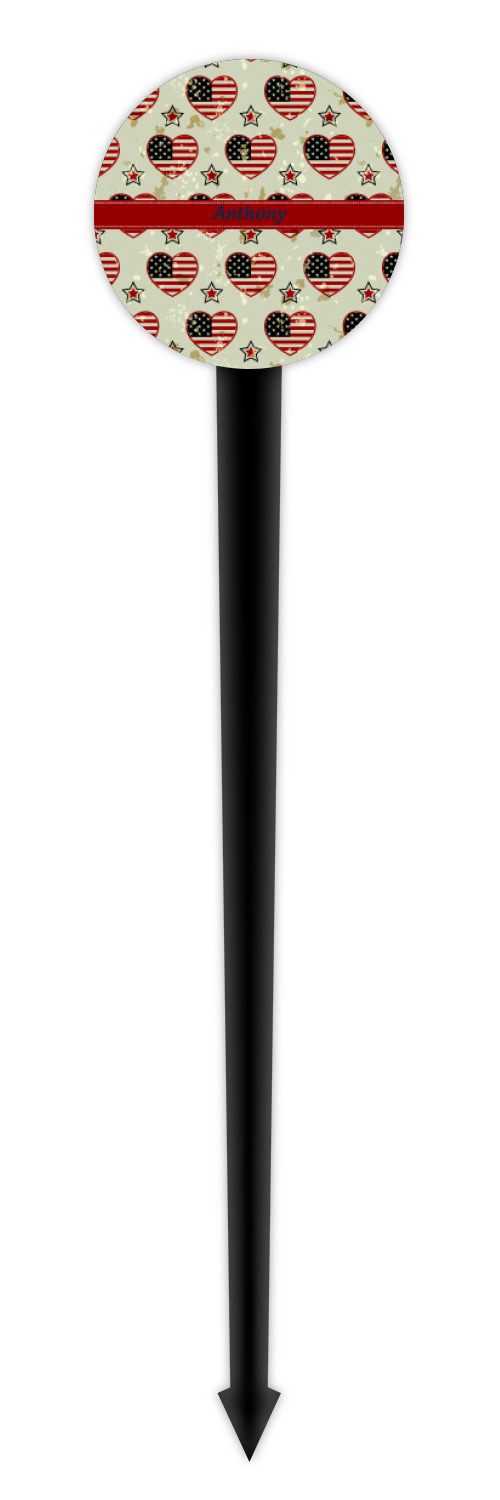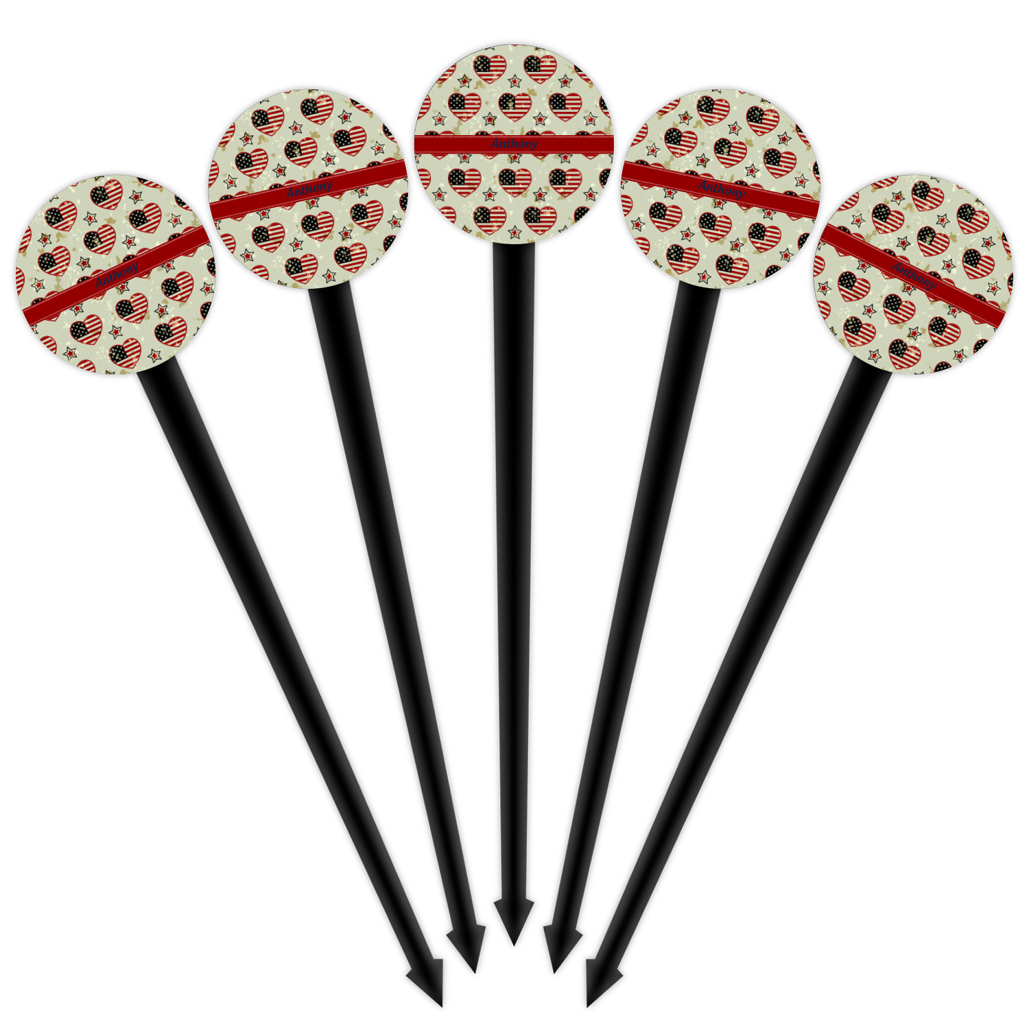 America / USA Designs for 4" Round Plastic Food Picks - Black - Single-Sided