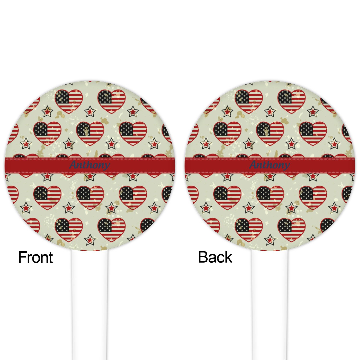 America / USA Designs for 4" Round Plastic Food Picks - White - Double-Sided