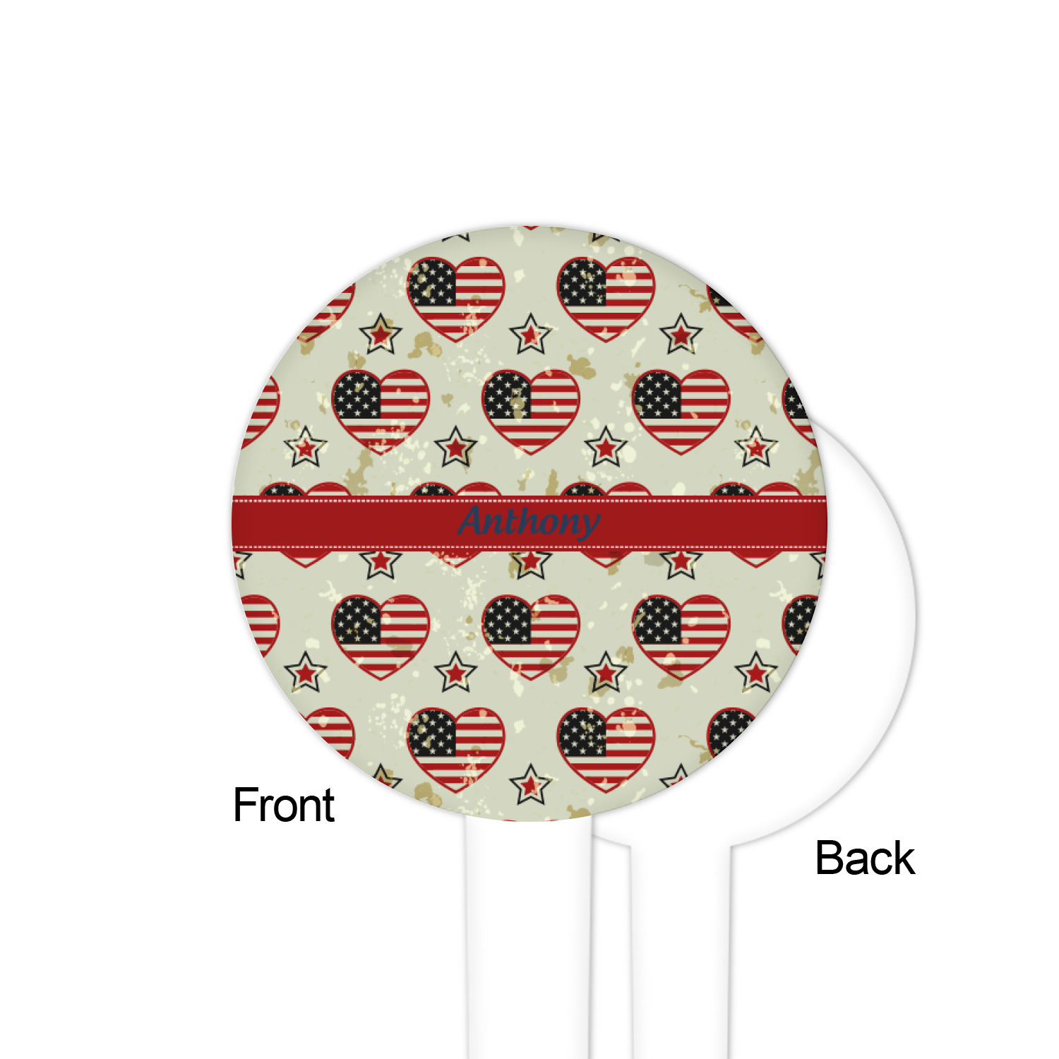 America / USA Designs for 4" Round Plastic Food Picks - White - Single-Sided