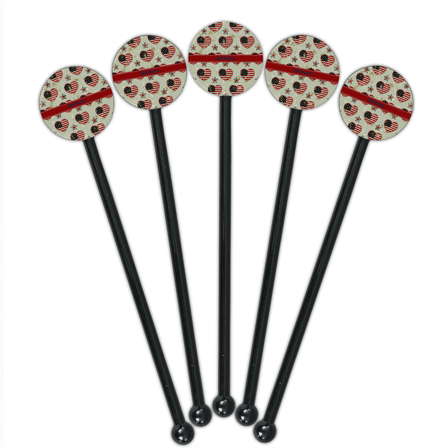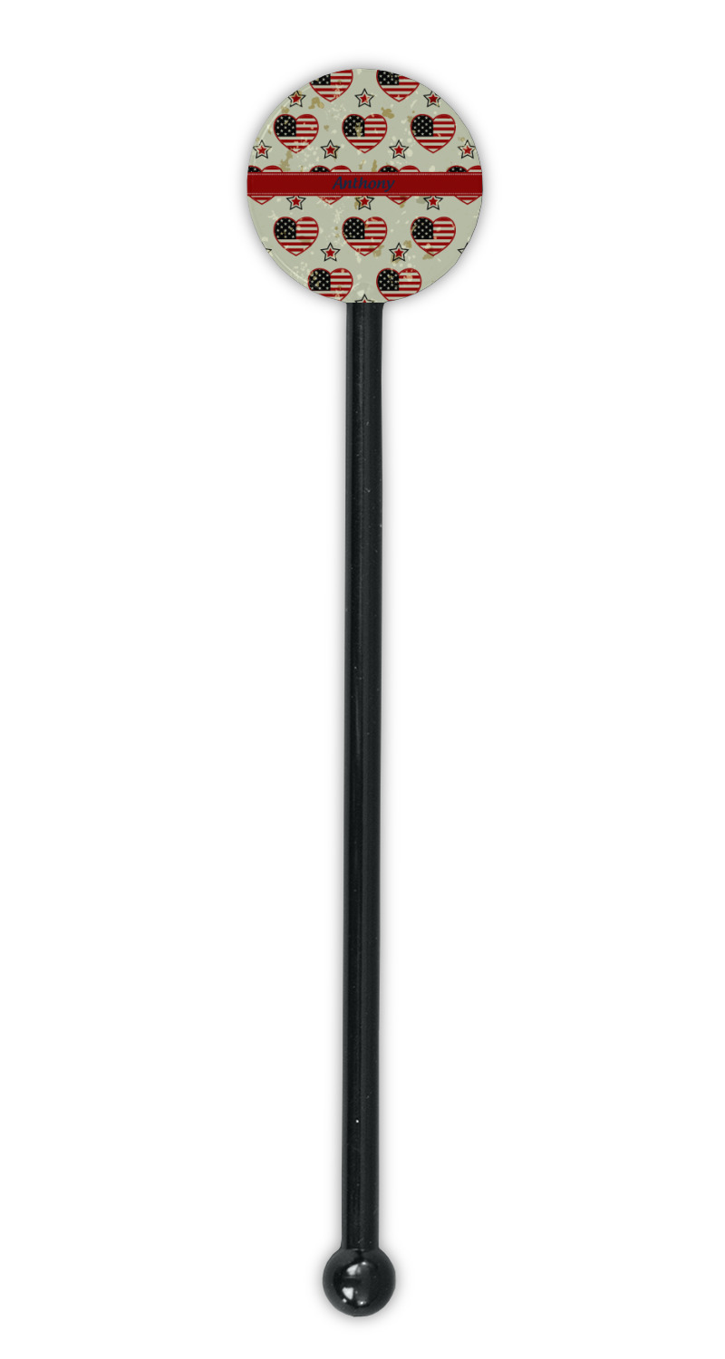 America / USA Designs for 5.5" Round Plastic Stir Sticks - Black - Single-Sided